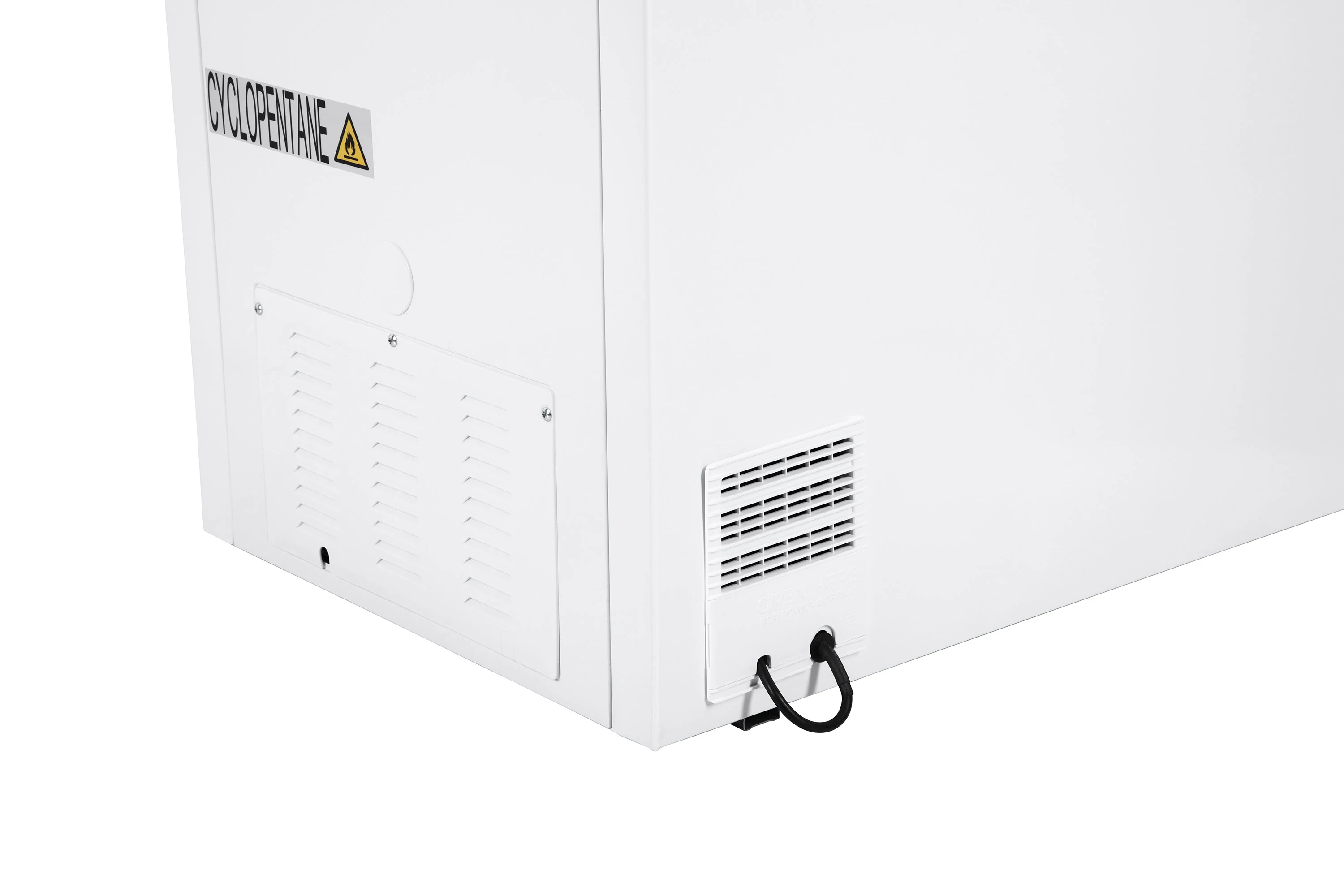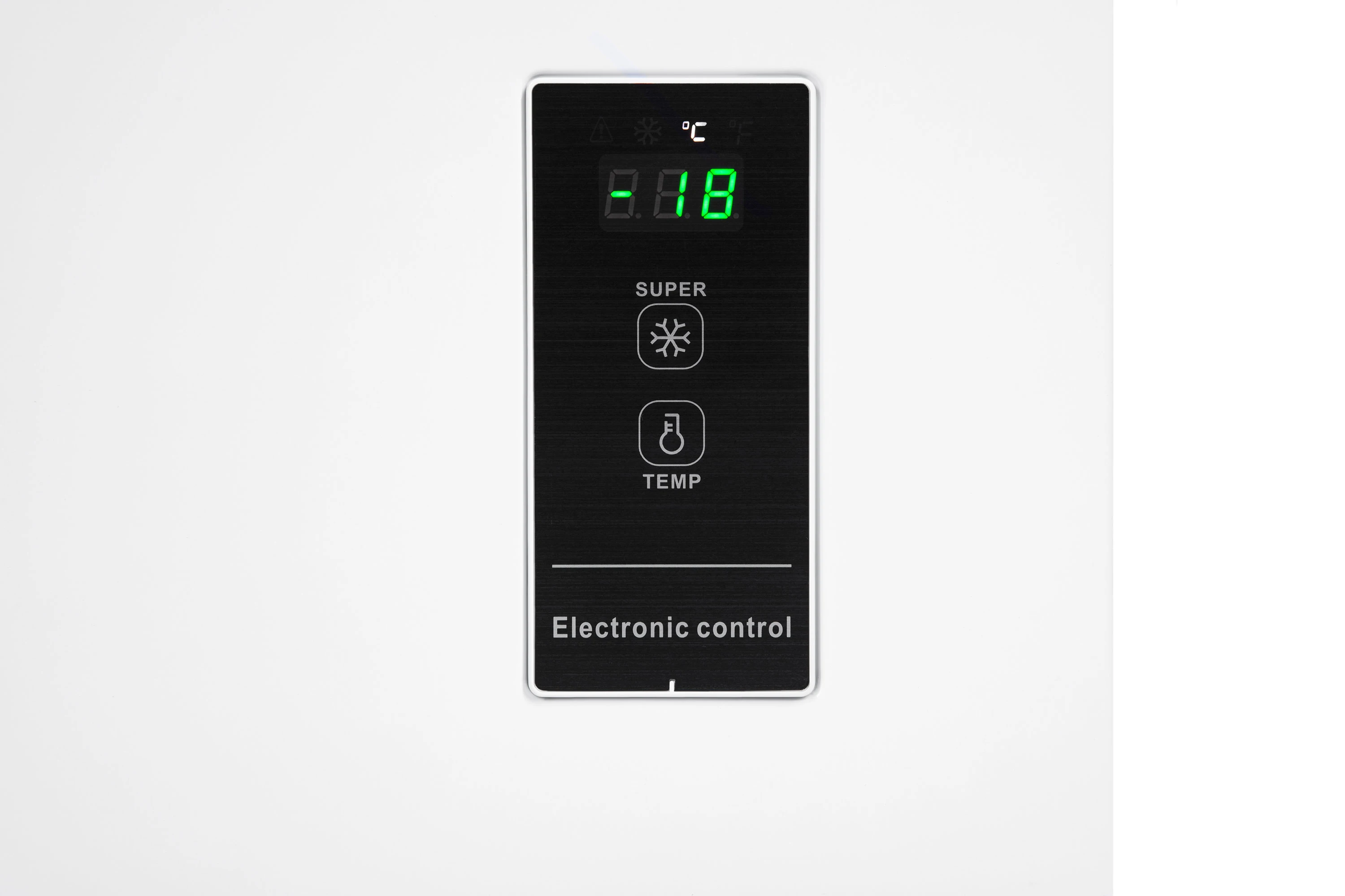 Морозильна скриня білого кольору з електронним керуванням та підтримкою роботи в режимі холодильника. Енергозбереження відповідає класу А+, а корисний об’єм становить 198 л. Час автономного збереження холоду – 21 год.