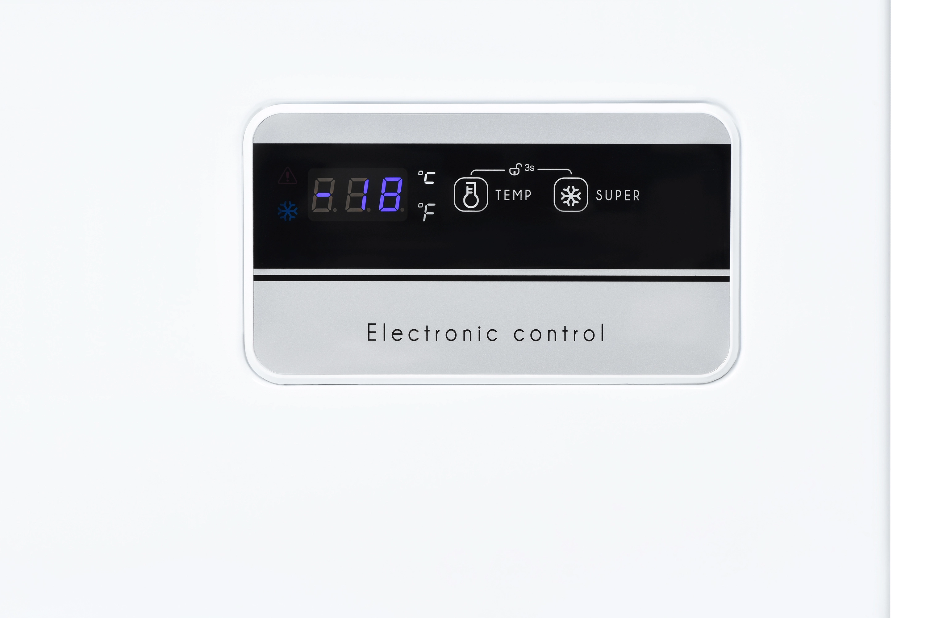 Велика морозильна скриня білого кольору з електронним керуванням та підтримкою роботи у режимі холодильника. Енергозбереження відповідає класу А+, а корисний об’єм складає 249 л.