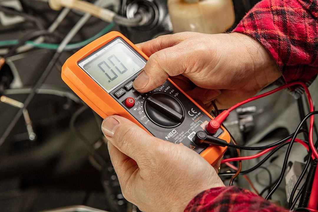 Мультиметр електронний універсальний NEO призначений для вимірювання напруги змінного та постійного струму, сили змінного та постійного струму, електричного опору, визначення розривів у електричних ланцюгах, hFE (тестування транзисторів), вимірювання ємності, температури та тестування світлодіодів. Має автоматичні діапазони вимірювання та пам’ять на результати останнього вимірювання.