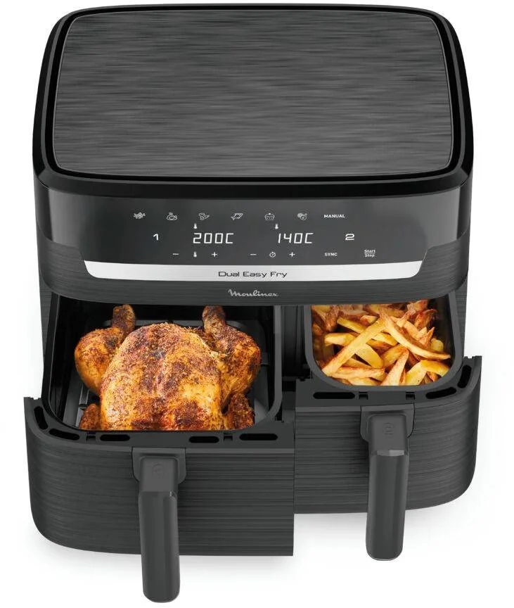 Насолоджуйтеся приготуванням здорової їжі з Dual Easy Fry EZ901H20 від Moulinex. Мультипіч поєднує в собі аерофритюрницю та гриль для найсмачніших страв із хрусткою скоринкою. Використання олії мінімальне, можна готувати навіть без неї.