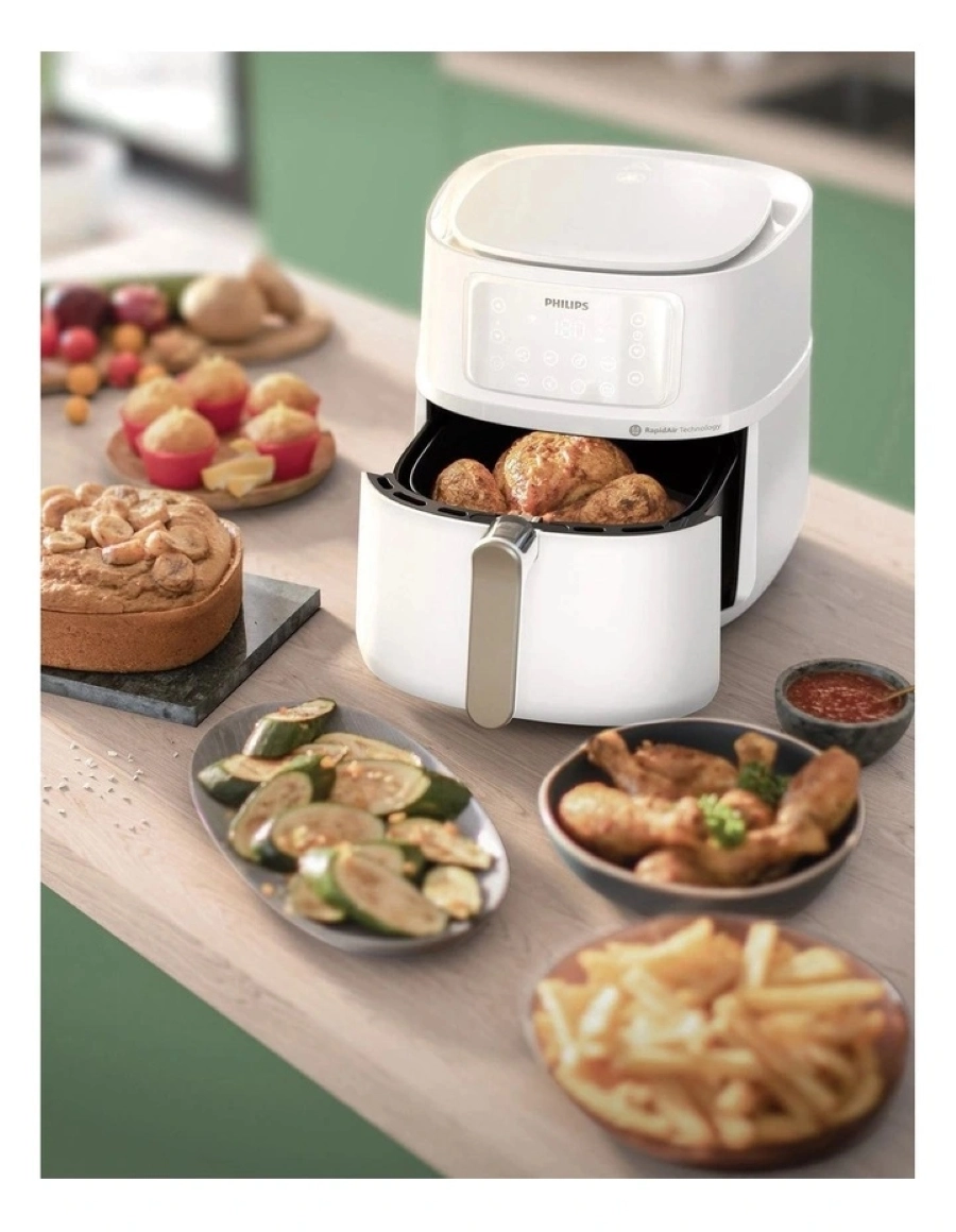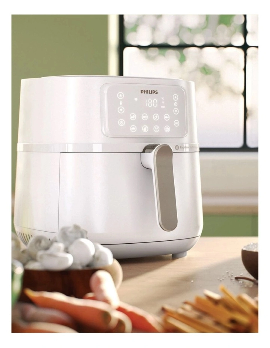 Philips Airfryer 5000 Series XXL Connected поєднує сучасні технології та зручність використання. Завдяки технології Rapid Air він швидко готує страви з мінімальним додаванням олії, що робить їх хрусткими зовні та ніжними всередині. Додаток HomeID дозволяє контролювати процес приготування дистанційно та відкриває доступ до широкого вибору рецептів для здорового харчування. Ємність XXL підходить для великих родин, а функція підтримання тепла допоможе зберегти їжу гарячою до подачі.