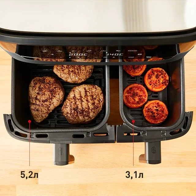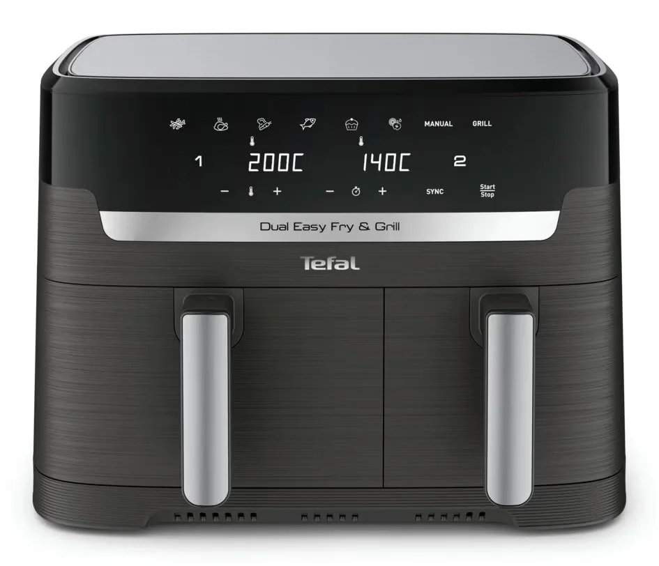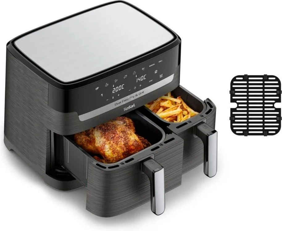 Мультипіч Tefal Dual EasyFry&Grill AirFryer, 2700Вт, чаша-5.2+3.1л, сенсорне керув., 2 чаши, гриль,