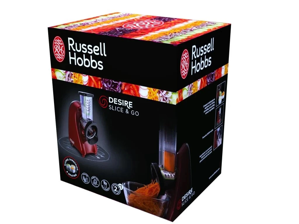 Мультирізка Russell Hobbs Desire Slice&Go, 200Вт, 3 насадки, корпус-пластик, червоний