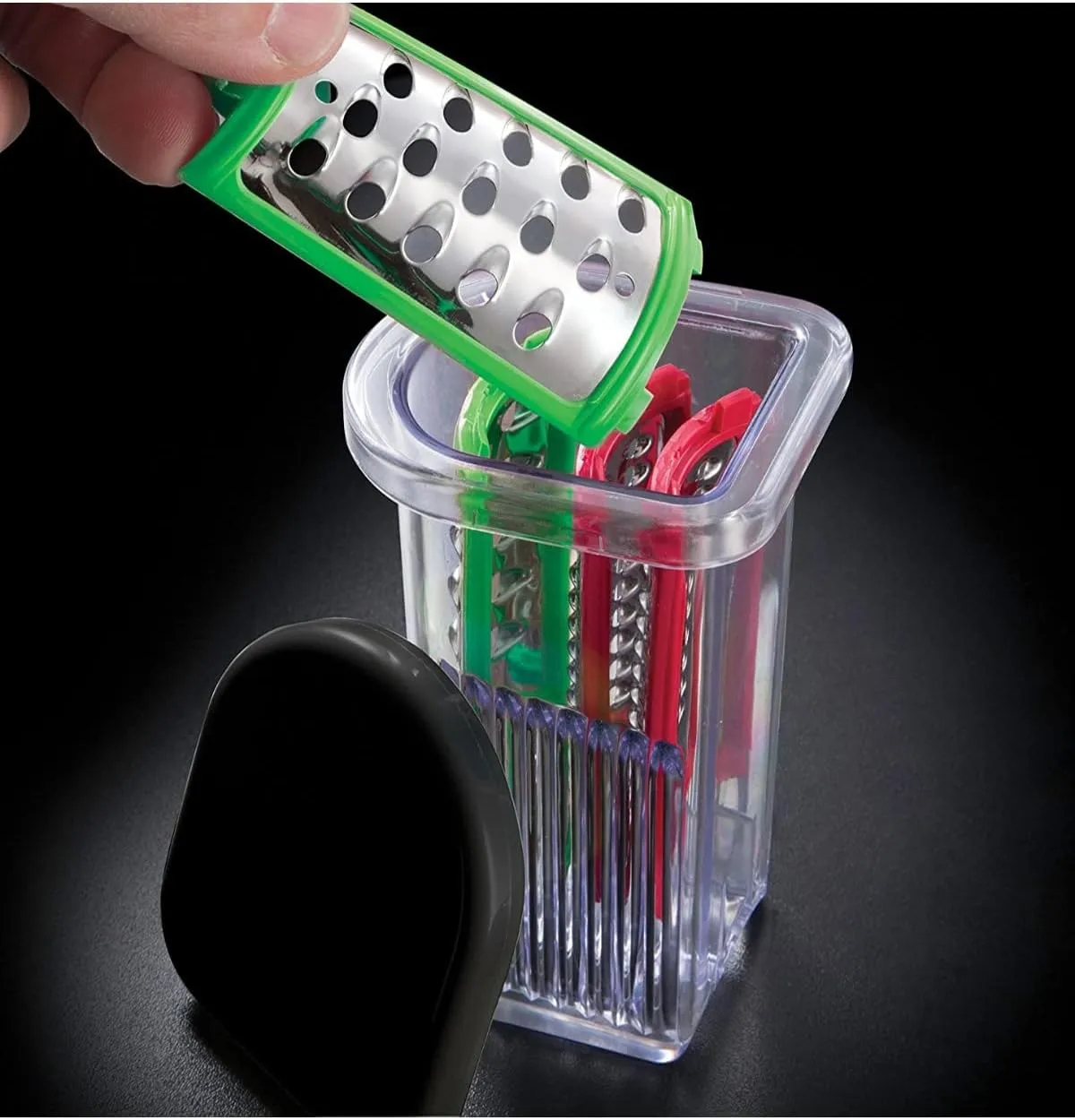 Мультирізка Russell Hobbs Desire Slice&Go – це універсальний кухонний прилад для швидкого та ефективного нарізання, тертя та шинкування продуктів. Оснащена потужним двигуном 200 Вт та трьома змінними насадками для різання скибочками, тертя та подрібнення. Легко розбирається та миється, а компактний дизайн дозволяє зручно зберігати прилад на кухні. Ідеально підходить для приготування салатів, тертих овочів та інших кулінарних задач.