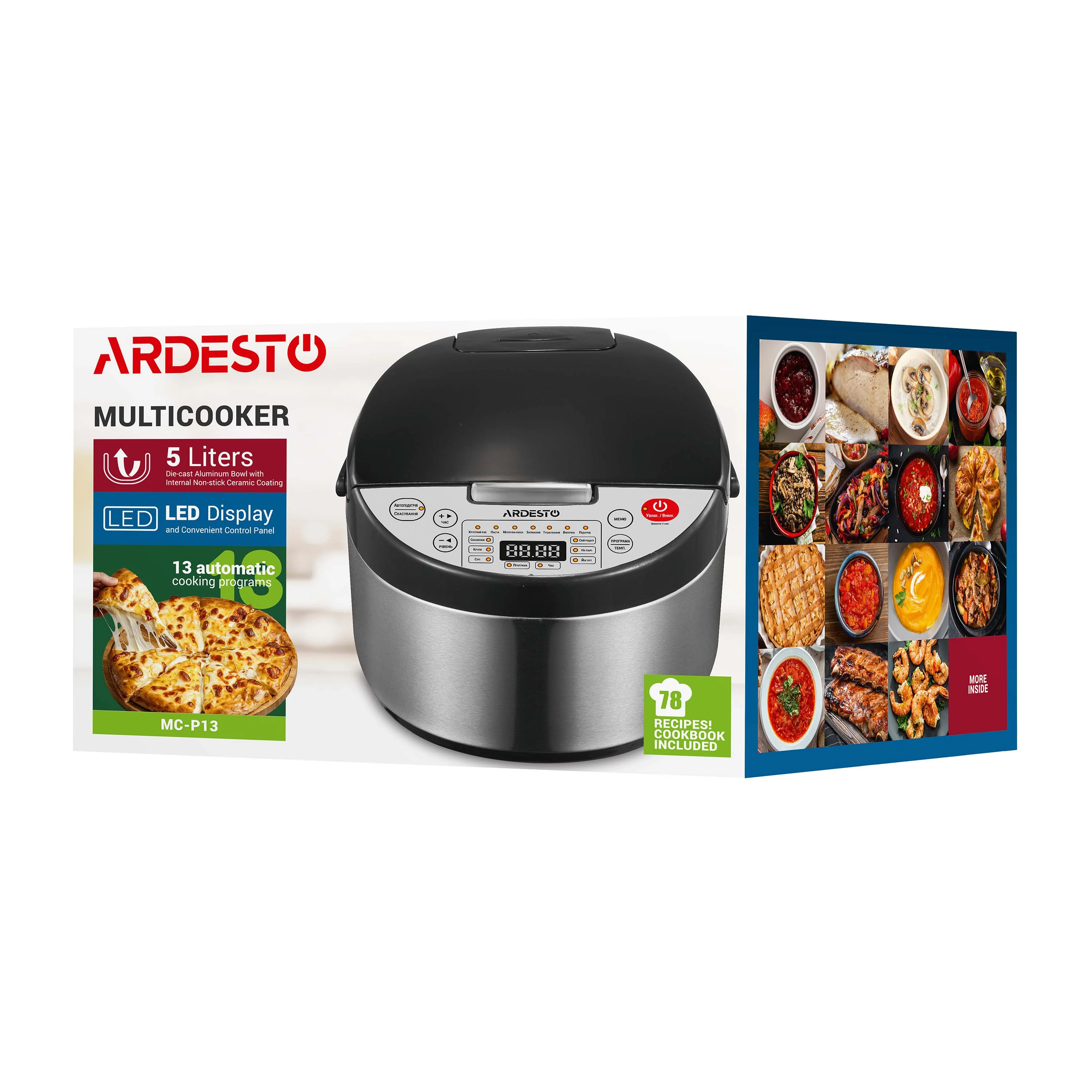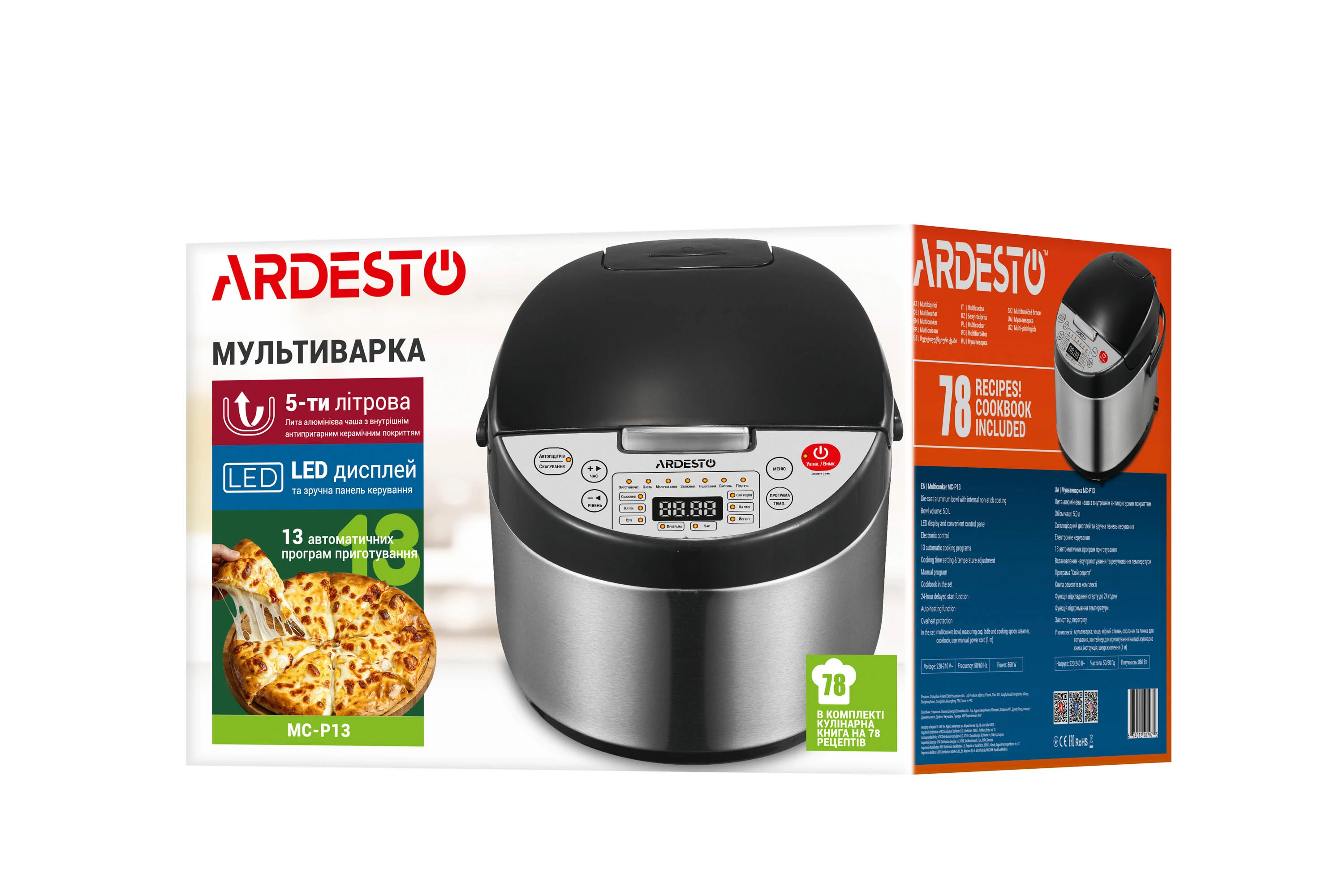 Мультиварка Ardesto, 860Вт, чаша-5л, електронне керув., книга рецептів, метал/пластик, сріблясто-чор