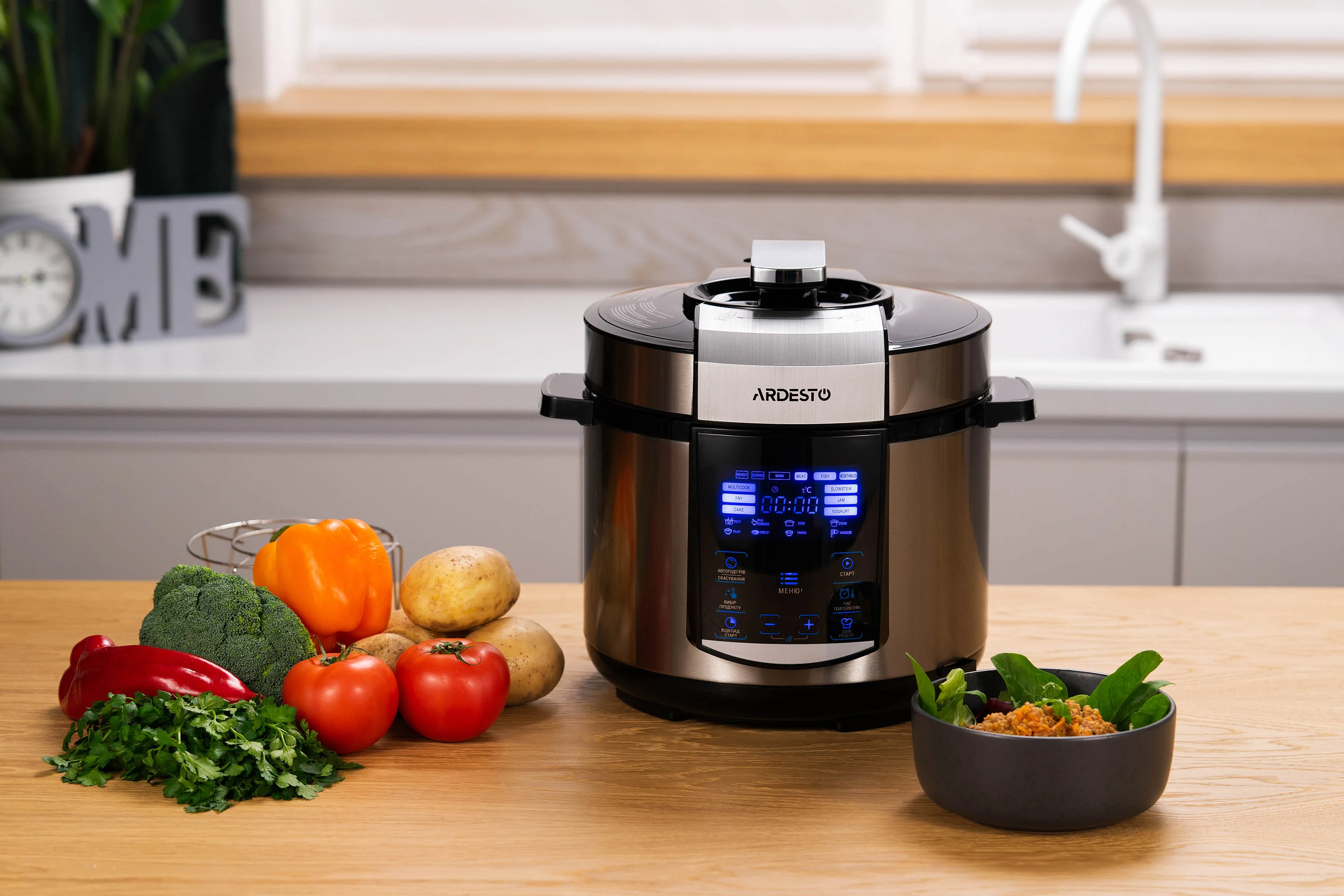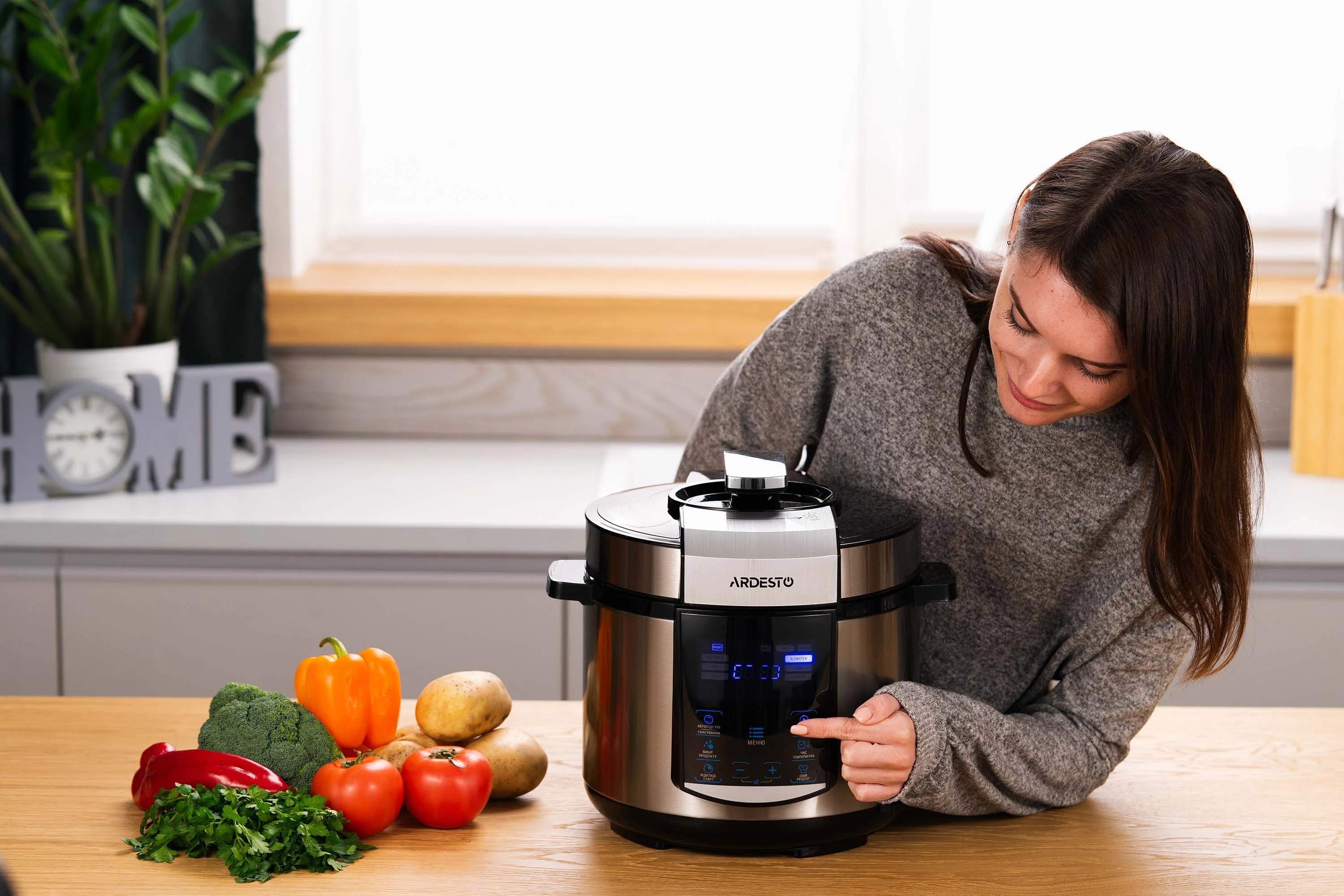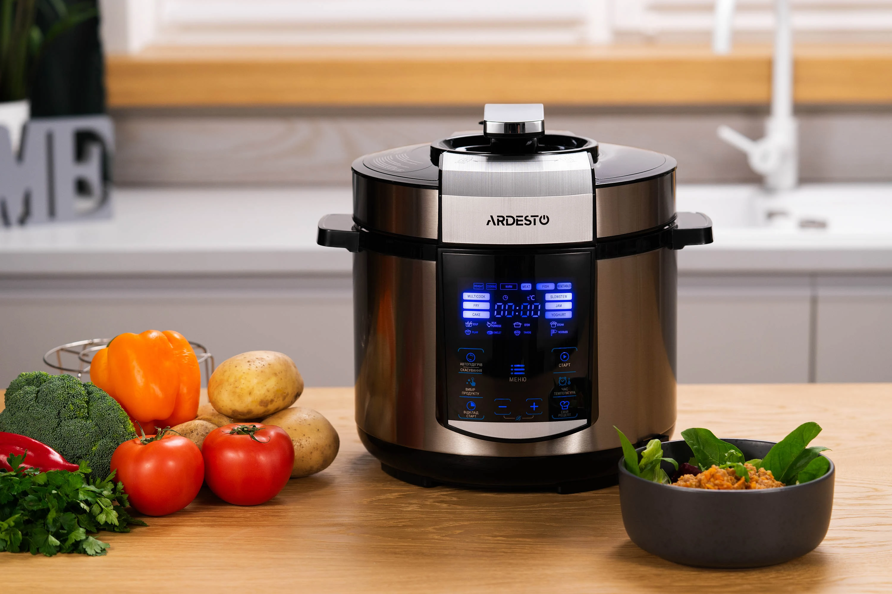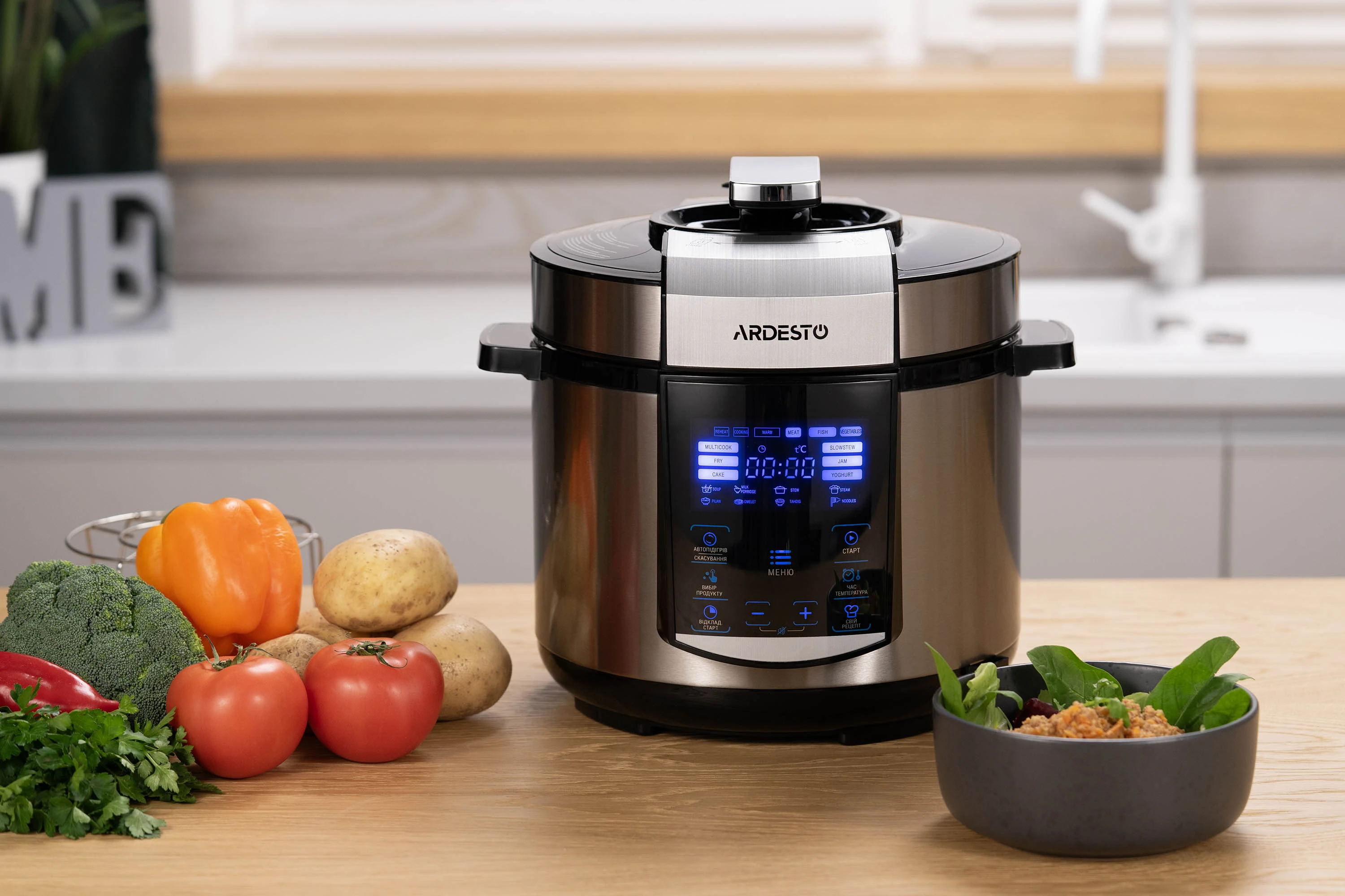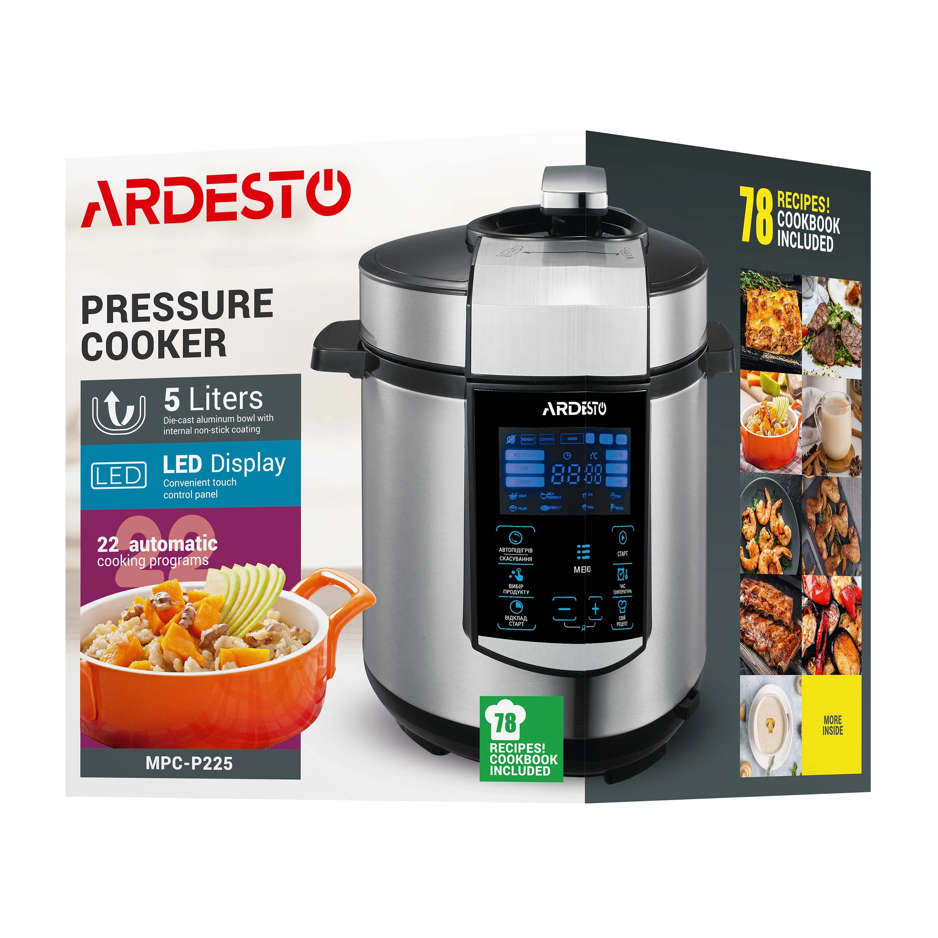Мультиварка-скороварка Ardesto, 900Вт, чаша-5л, електронне керув., книга рецептів, метал/пластик, сі