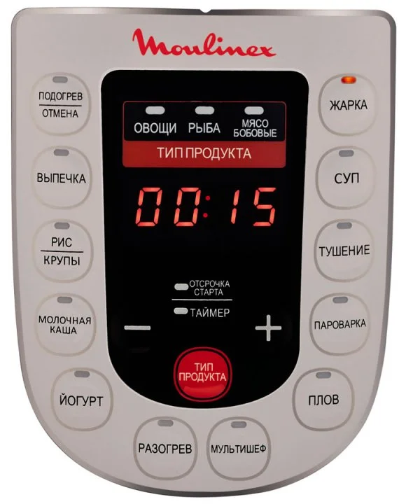 Дана модель мультиварки Moulinex пропонує 21 режим приготування страв, включаючи режим «Мультишеф», і можливість вибору типу продукту: м'ясо, риба або овочі. Керамічну чашу з високою зносостійкістю дуже просто мити, а завдяки можливості приготування під тиском жорсткі продукти готуються швидше, стають ніжніші, при цьому не втрачають своєї соковитості.
