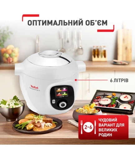 Мультиварка-скороварка Tefal Cook4Me +, 1600Вт, чаша-6л, електронне керув., пластик, білий