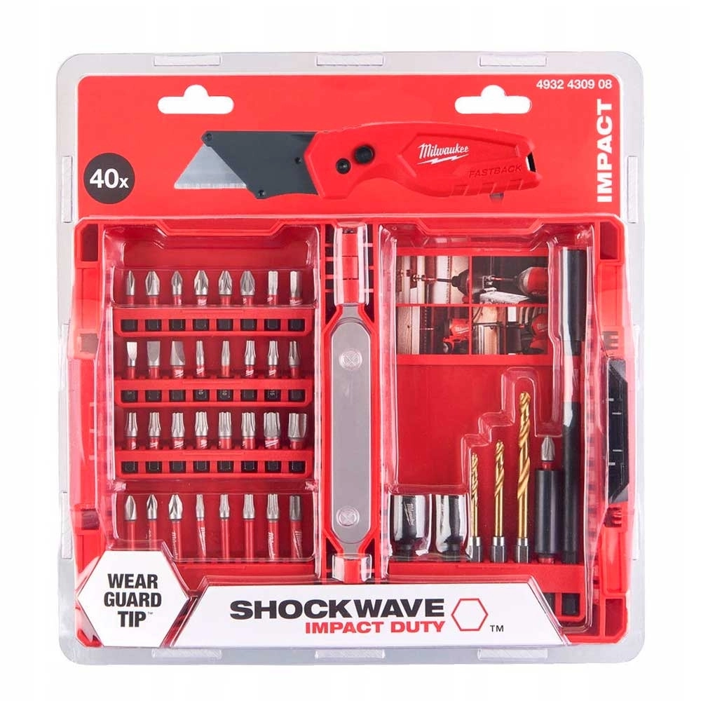 Набір Milwaukee Shockwave Impact Drill and Driver Set складається з 40 високоякісних біт та компактного складаного ножа Fastback. Цей набір розроблений для забезпечення виняткової довговічності та продуктивності при роботі з ударними шуруповертами та дрилями. Shockwave Impact Duty біти - виготовлені з власної сталі Milwaukee та піддані спеціальній термообробці для підвищення міцності. Геометрія Shock Zone зменшує навантаження на кінчик біти, що знижує ризик поломки та забезпечує до 30 разів довший термін служби.