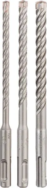 Набір з трьох зносостійких свердел Bosch SDS-Plus-5X. Бури з центрирующим вістрям точно проходять армований бетон, цегляну кладку, бетон. Чотири ріжучі кромки свердла попереджають його застрювання в арматурі. Чотири спіралі ефективно відводять пил.