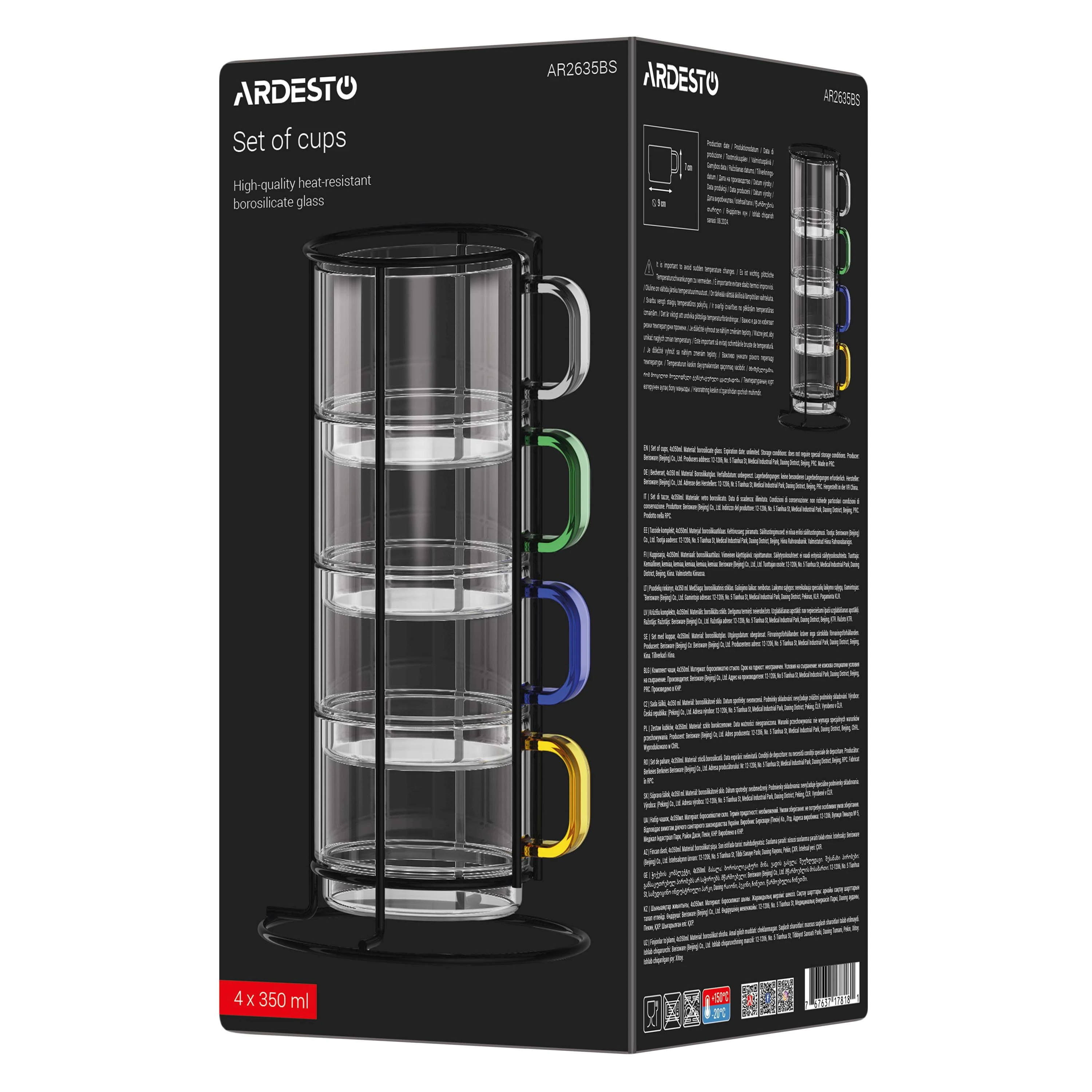 Набір чашок Ardesto 350мл, 4шт, боросилікатне скло, прозорий