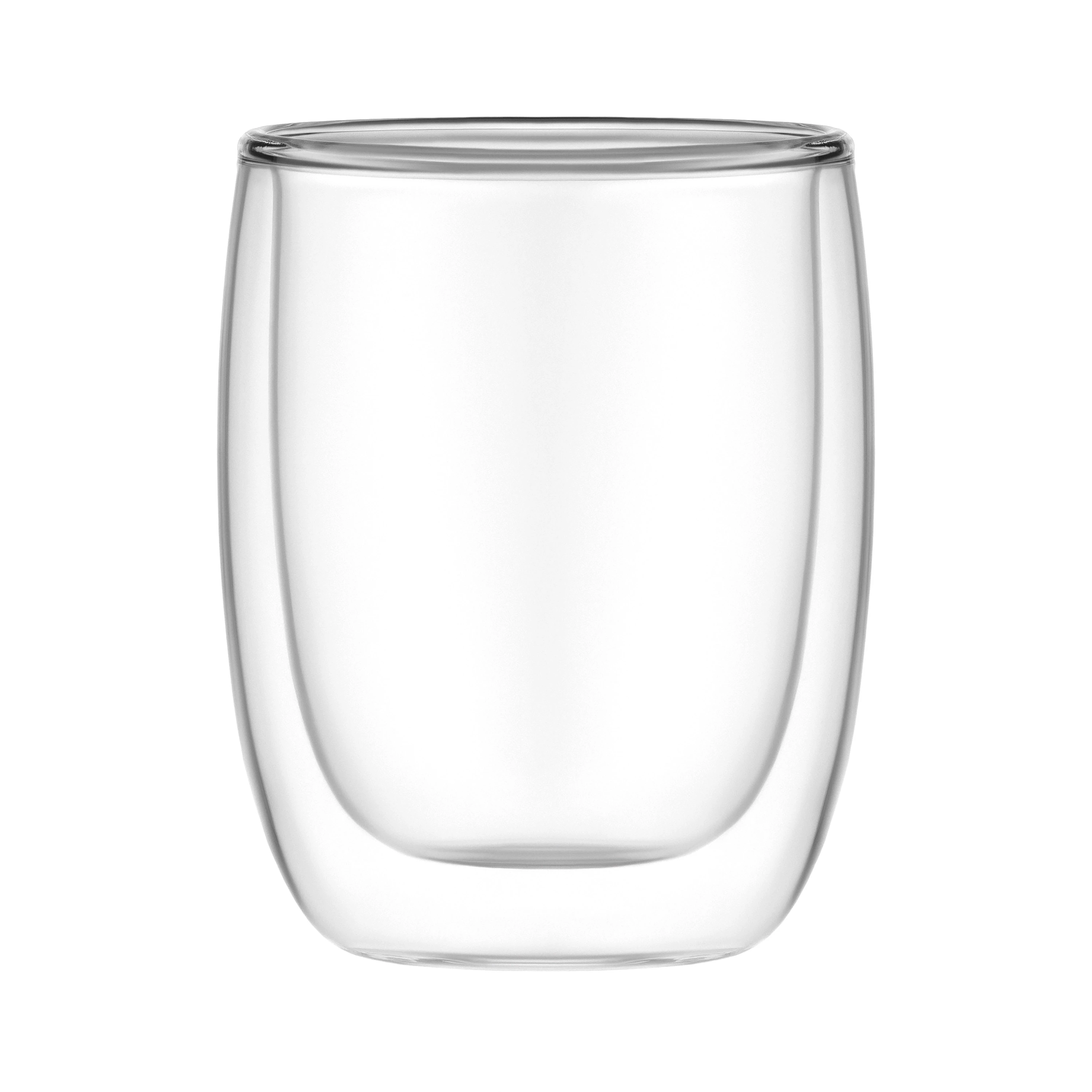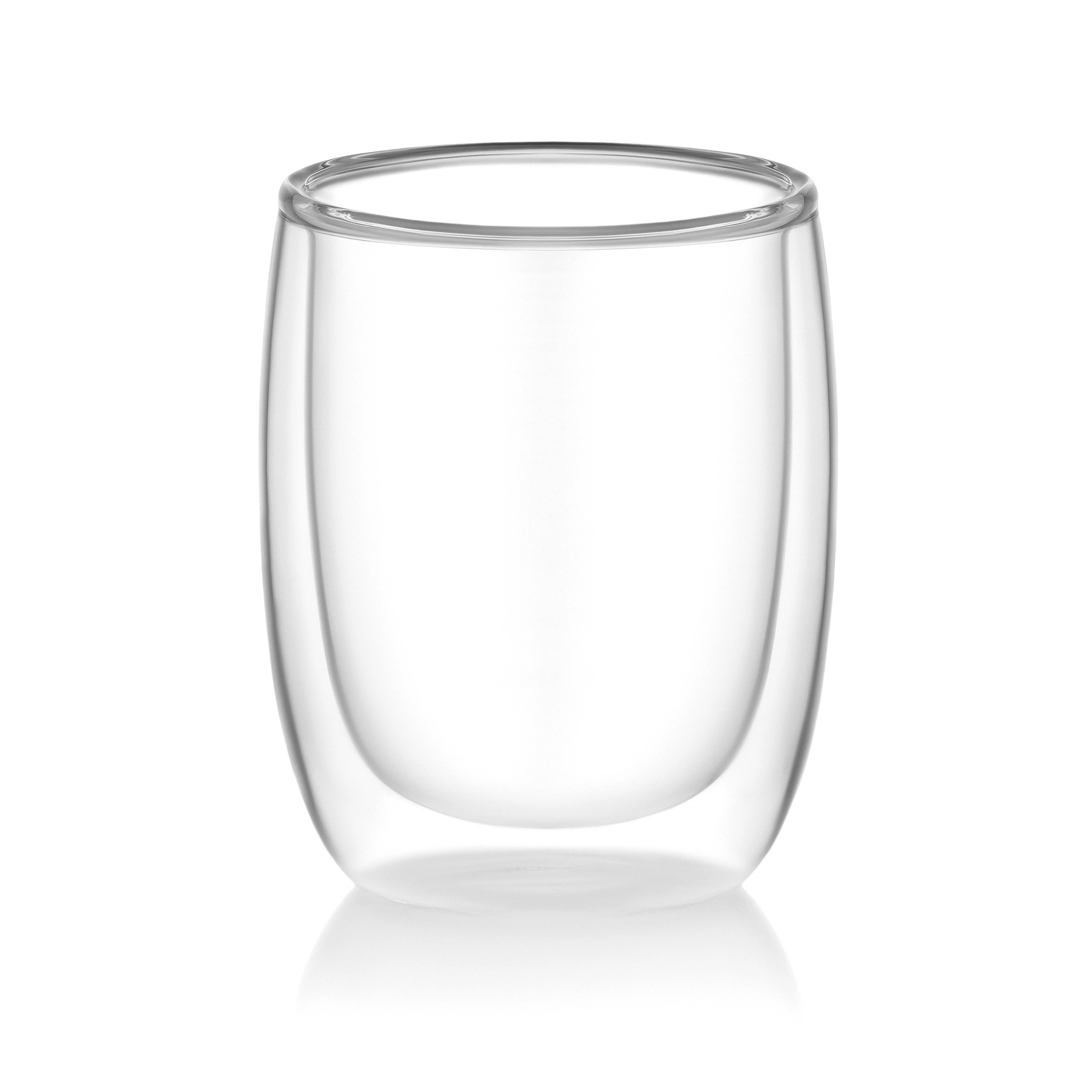 Чашки з подвійними стінками – це насолода для поціновувачів естетики та практичності. Вони надзвичайно міцні та легкі, витримують температуру від -20 до +150 °C. Їх можна використовувати як піали або креманки для морозива. Завдяки особливій конструкції здається, що напої та десерти в них парять у повітрі.