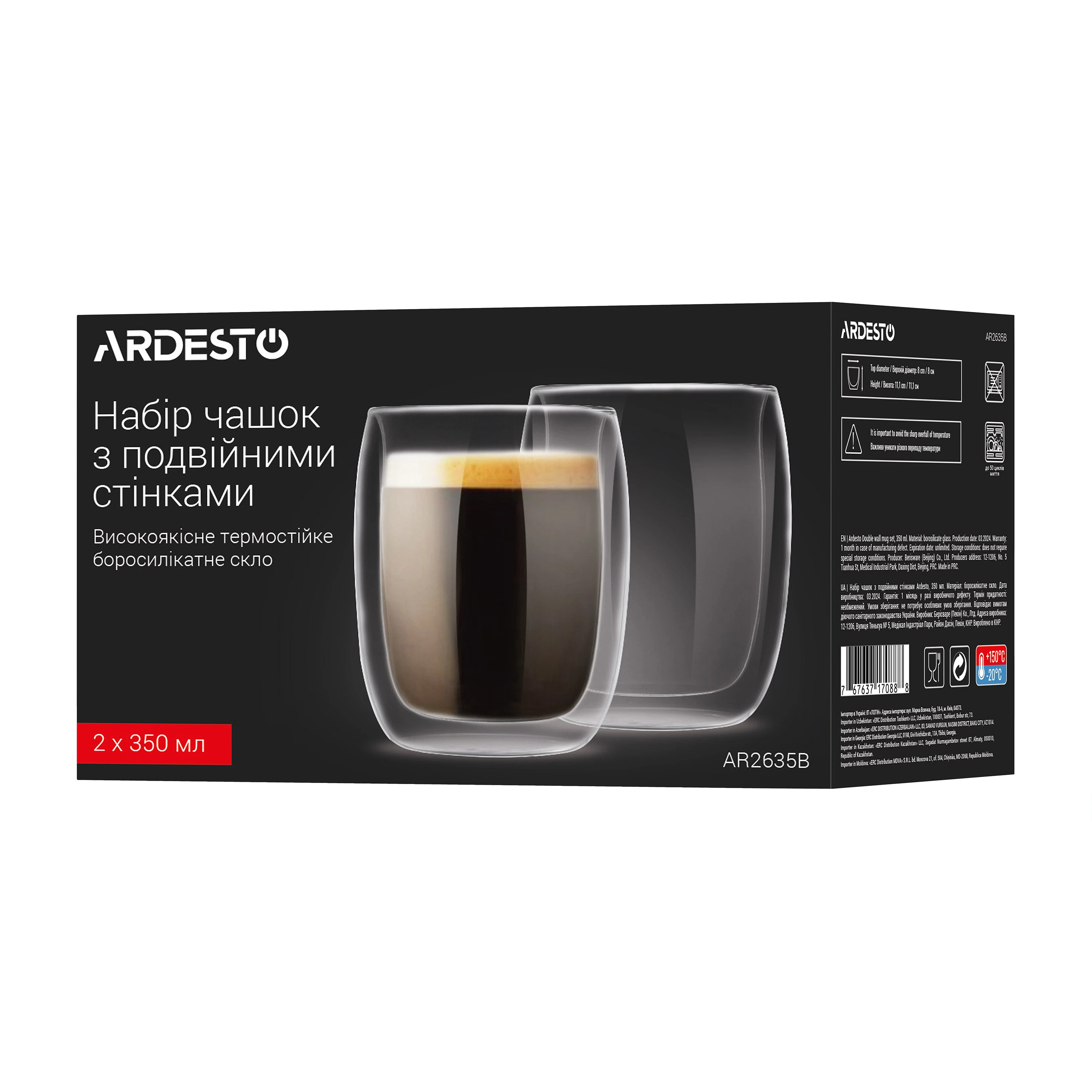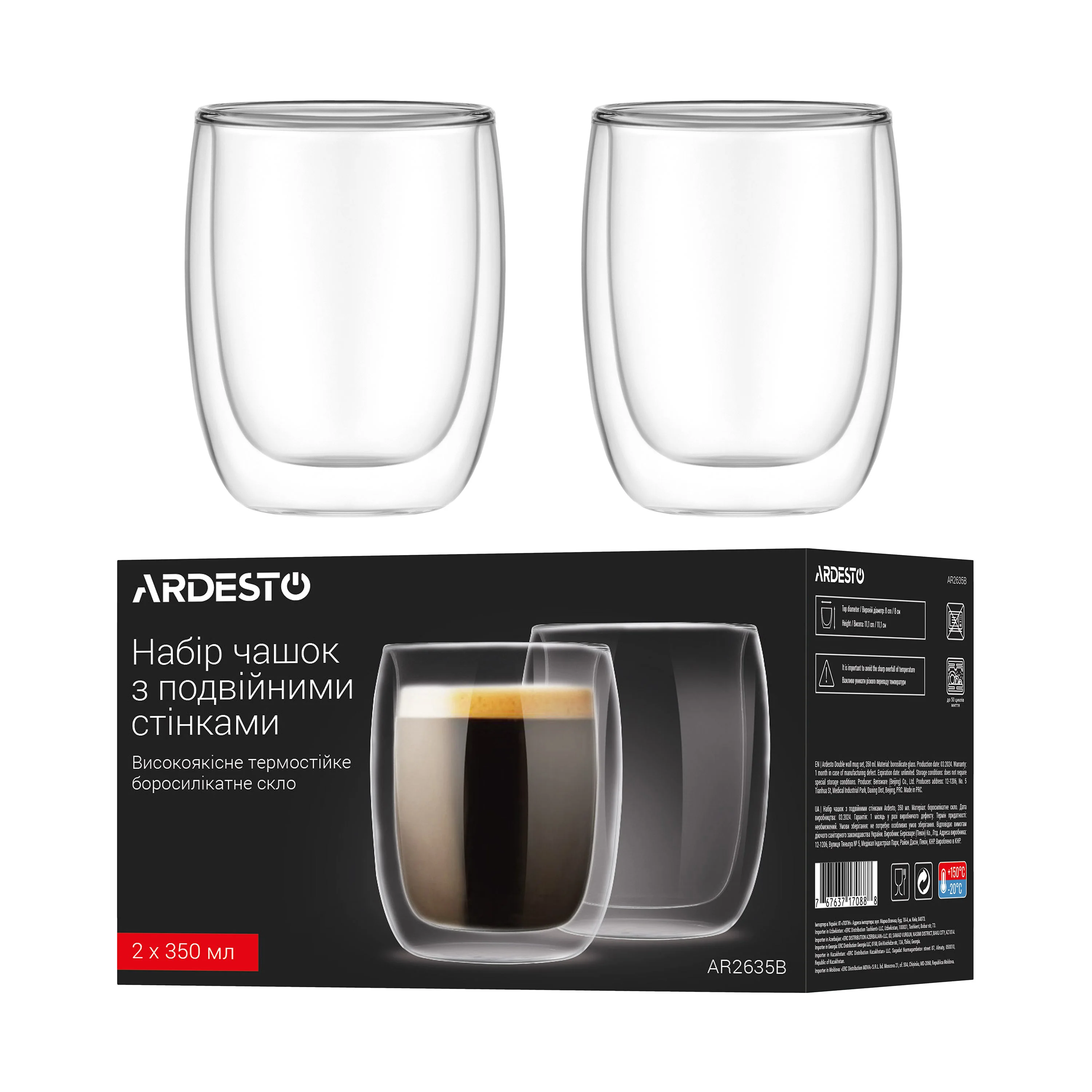 Набір чашок з подвійними стінками Ardesto, 350мл, 2шт, боросилікатне скло, прозорий