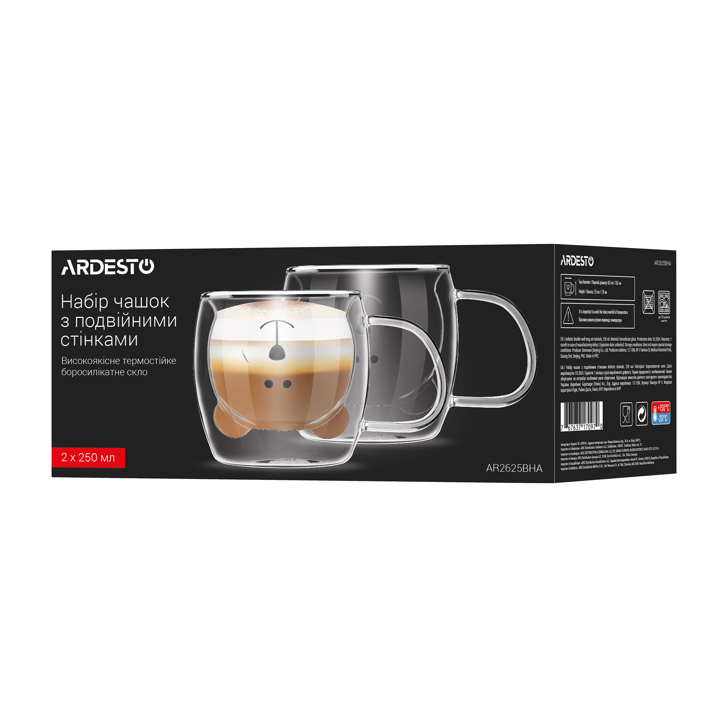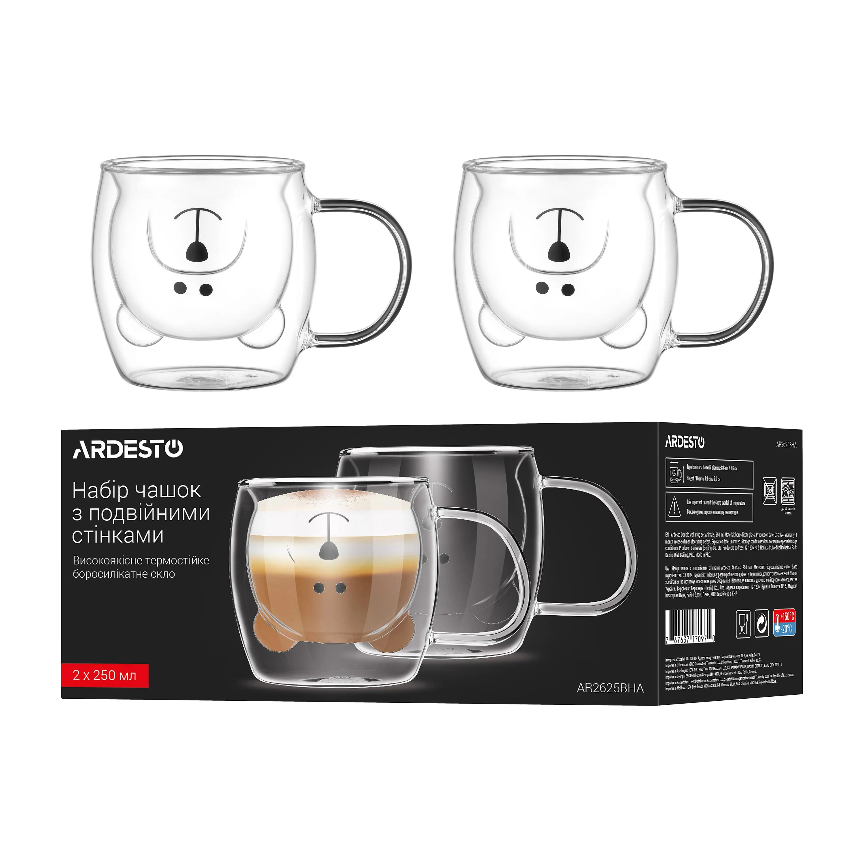 Набір чашок з ручками і подвійними стінками Ardesto Animals, 250мл, 2шт, боросилікатне скло, прозори