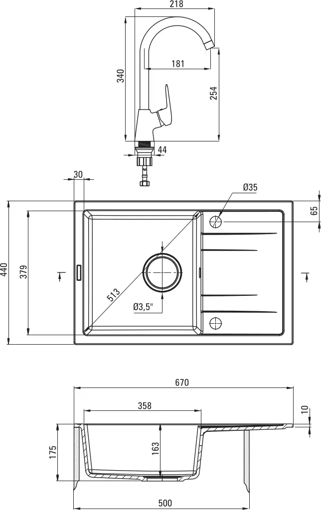 - Комплектация сифон; кухонна мийка; змішувач; дозатор; документа