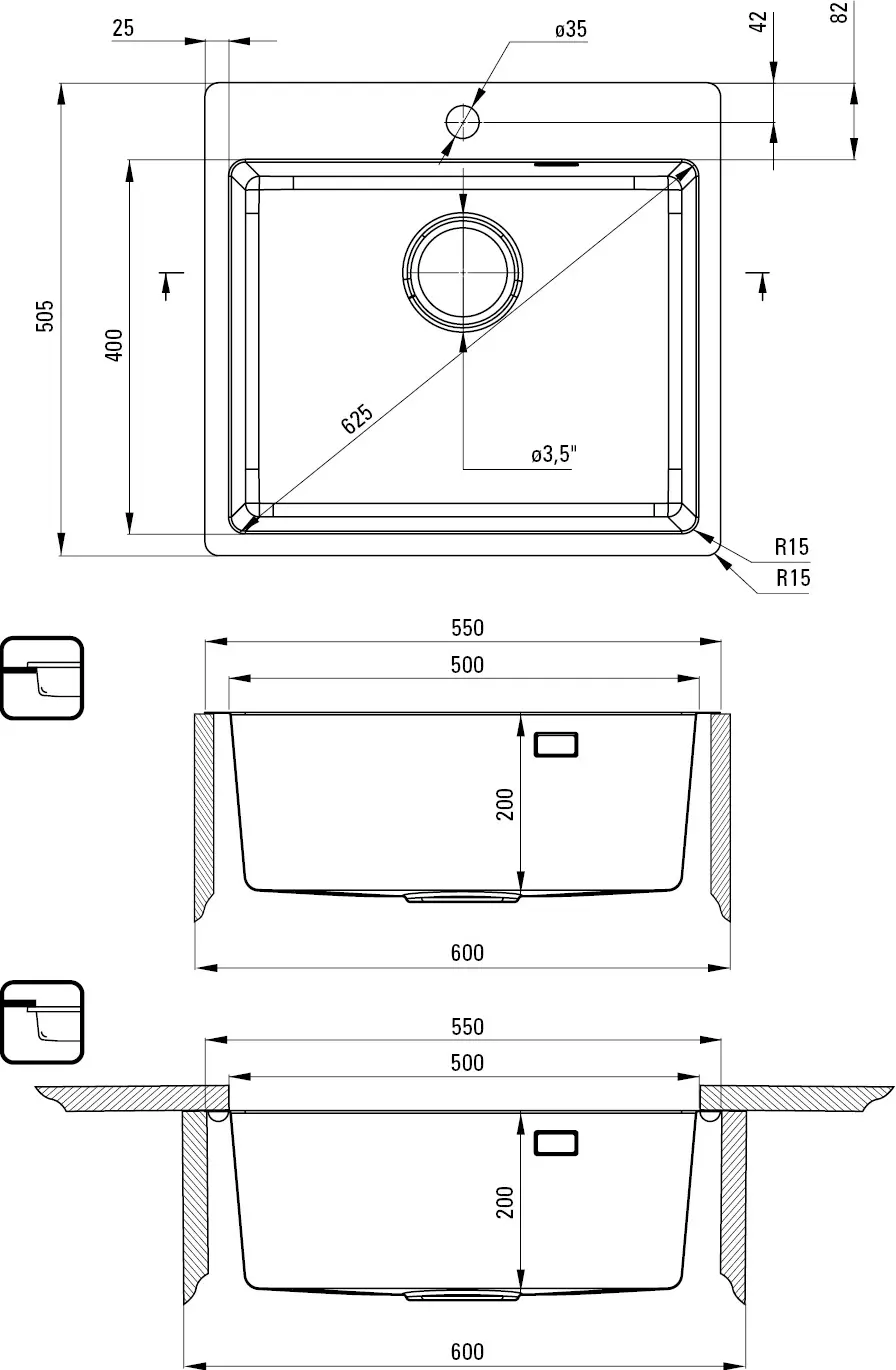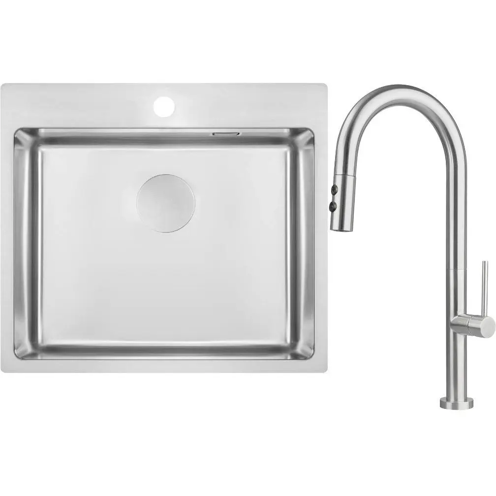 Набір для кухні Deante Olfato – це витончена комбінація функціональності та сучасного дизайну, що підходить для будь-якої кухні. Раковина виготовлена з високоякісної сталі 304 з брашованим і сатиновим покриттям, що не лише додає їй стильного вигляду, а й забезпечує стійкість до пошкоджень та легкість у догляді. Завдяки глибині камери 200 мм, ця раковина стане ідеальним вибором для миття великих предметів посуду. Можливість врізного, підвісного монтажу або встановлення на одному рівні зі стільницею дозволяє легко інтегрувати її в різні типи кухонних інтер'єрів.