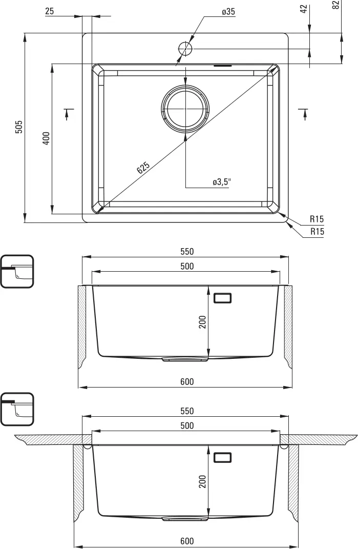 - Комплектация сифон; кухонна мийка; змішувач; документація; злив