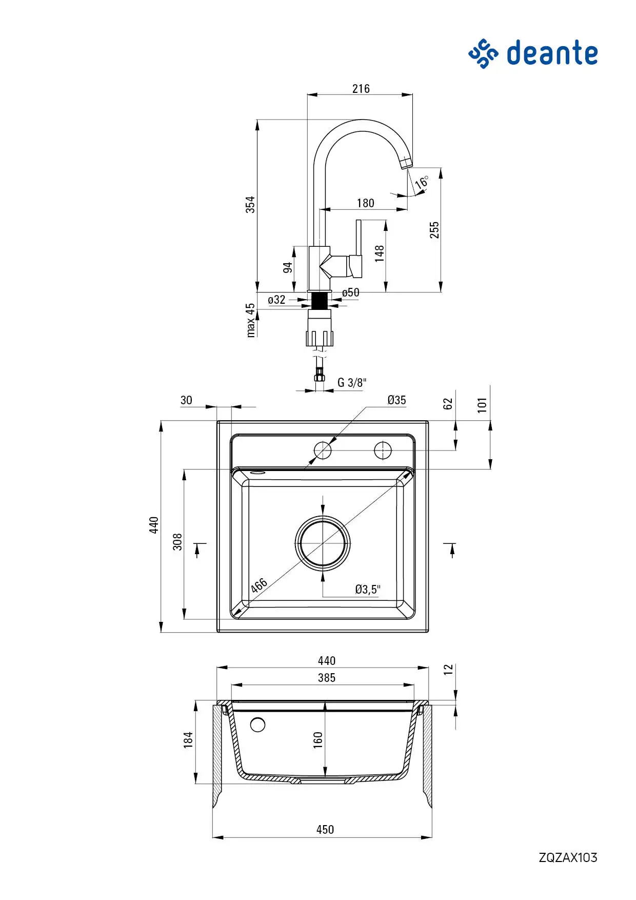 Набір для кухні Deante Zorba, гранітна мийка ZQZ_2103 + зміш, BEN_262M, графіт-хром