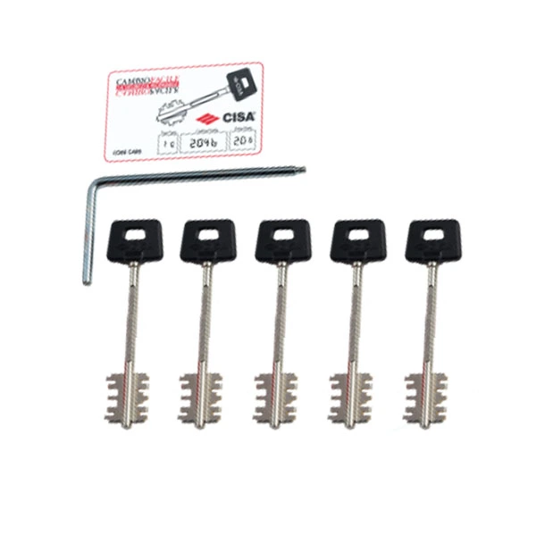 Набір для перекодування замків CISA 06520-61-1 – це комплект ключів для перекодування замків лінійки NEW CAMBIO FACILE із сувальдним механізмом закривання – 57685, 57675, 57986, 57985, B 7984. Він дозволяє у разі потреби змінити комплект ключів, не розбираючи і не змінюючи сам замок.