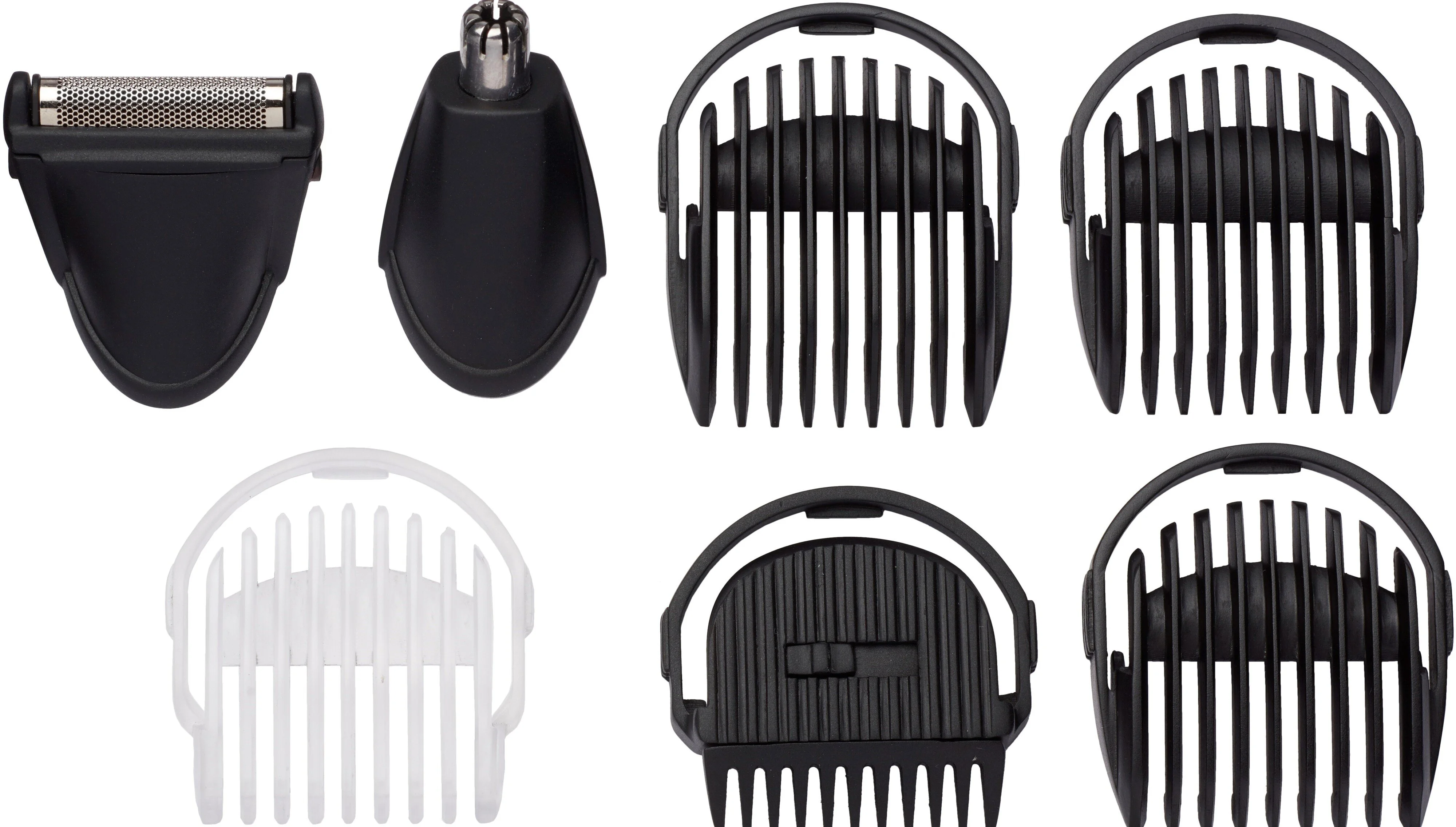 Прибор оснащён вибрационным мотором, острыми самозатачивающимися лезвиями из нержавеющей стали и работает от аккумулятора до 60 минут. Комплект включает 10 насадок, среди которых есть триммеры для точной окантовки, тела и деликатных зон.