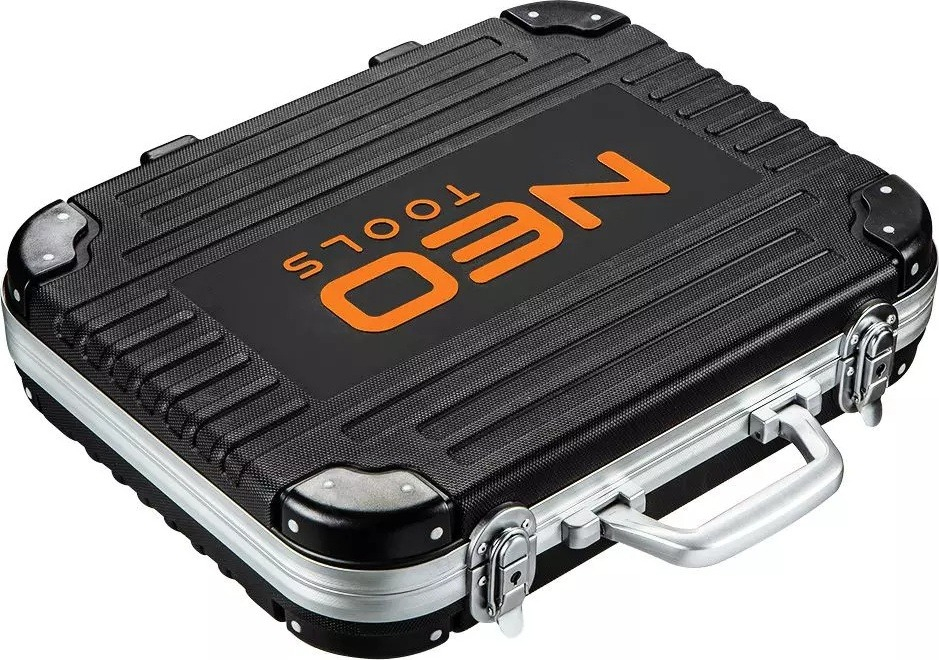 Набір спеціалізованих інструментів і компонентів для електричних завдань, представлених у надзвичайно ефектному та практичному футлярі з логотипом бренду NEO TOOLS. Він складається з 108 елементів, виготовлених з високоякісних матеріалів, що забезпечує міцність і стійкість до пошкоджень.