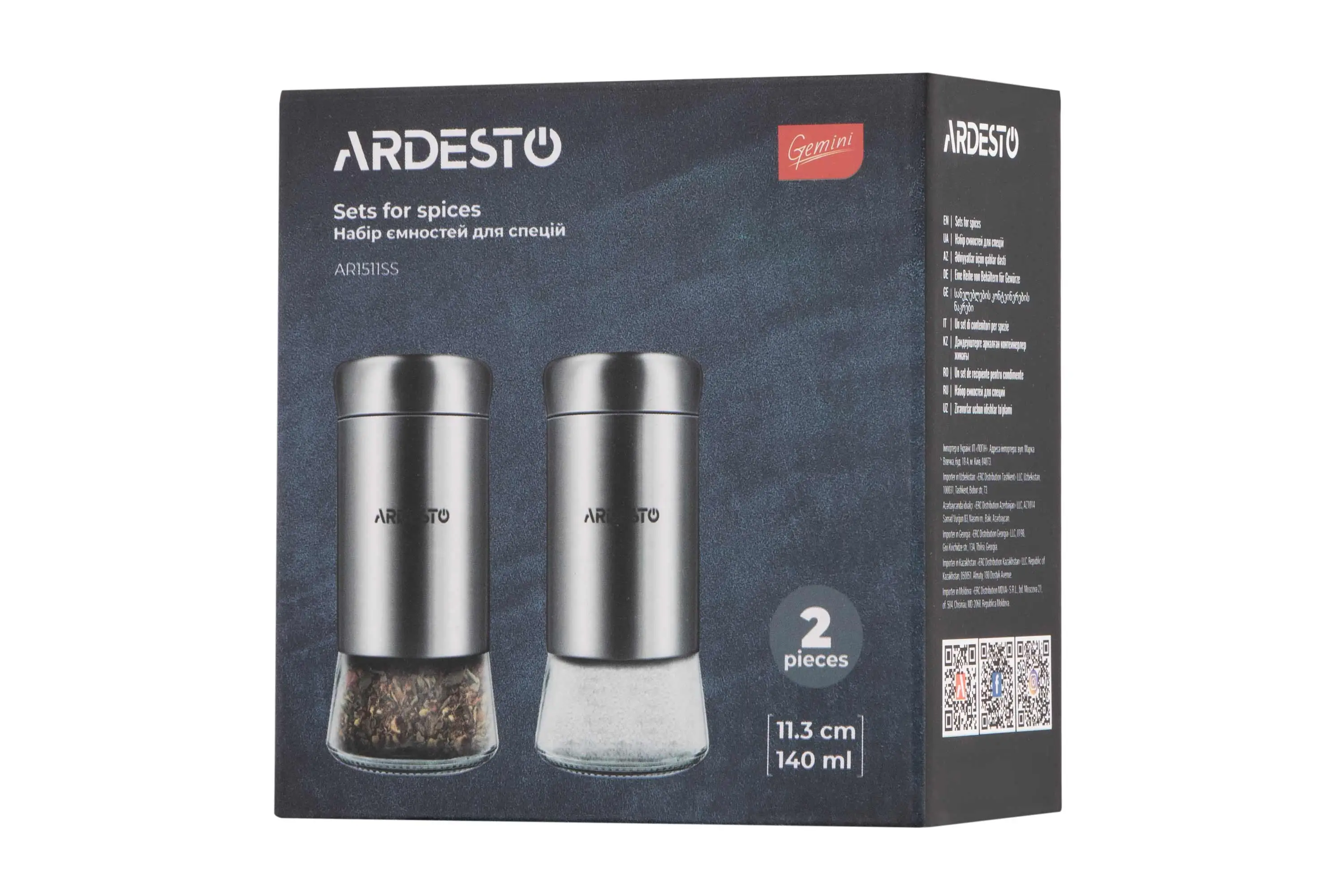 Набір ємностей для спецій Ardesto Gemini, 2х140мл, 2 предмети, нержавіюча сталь, скло, прозорий