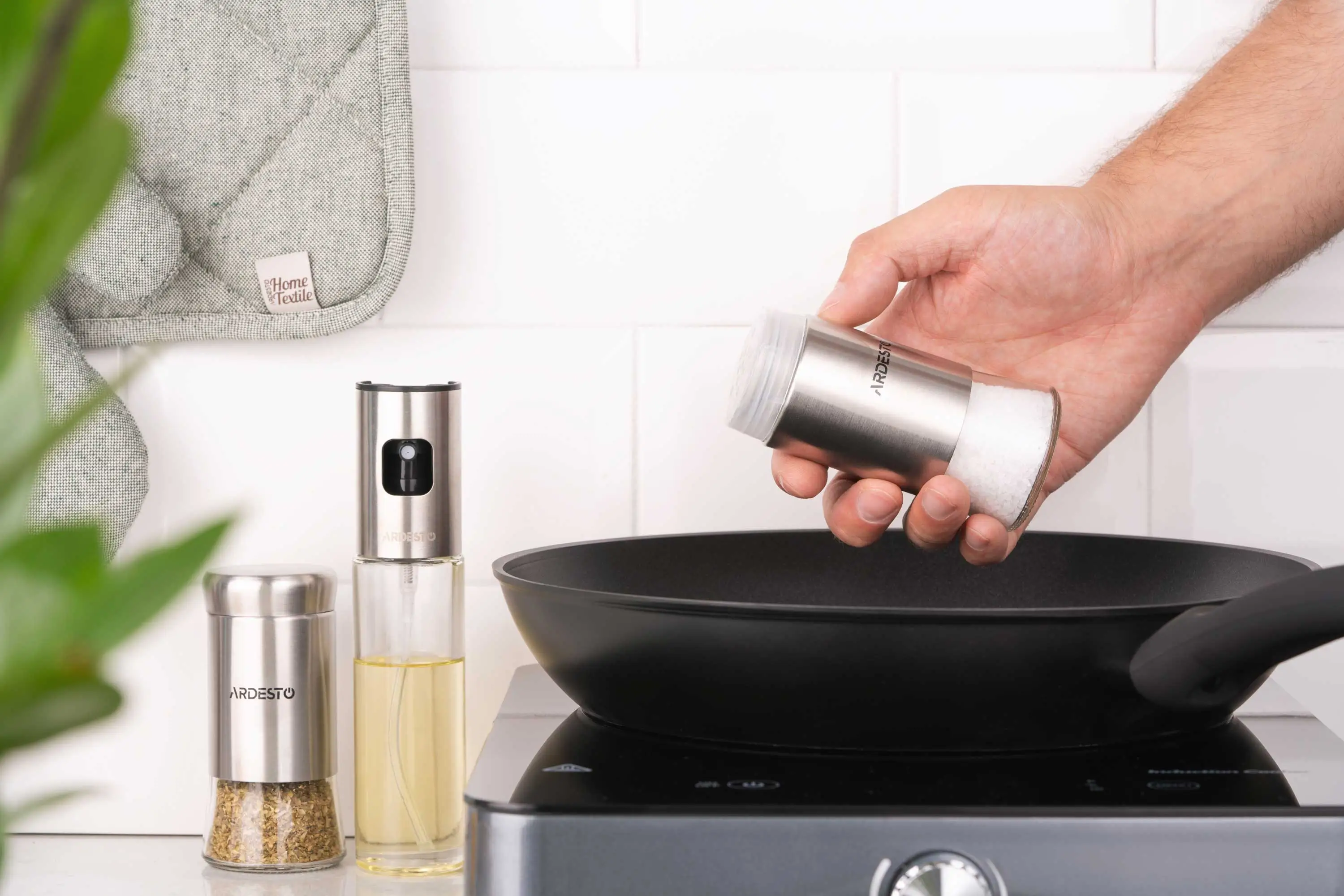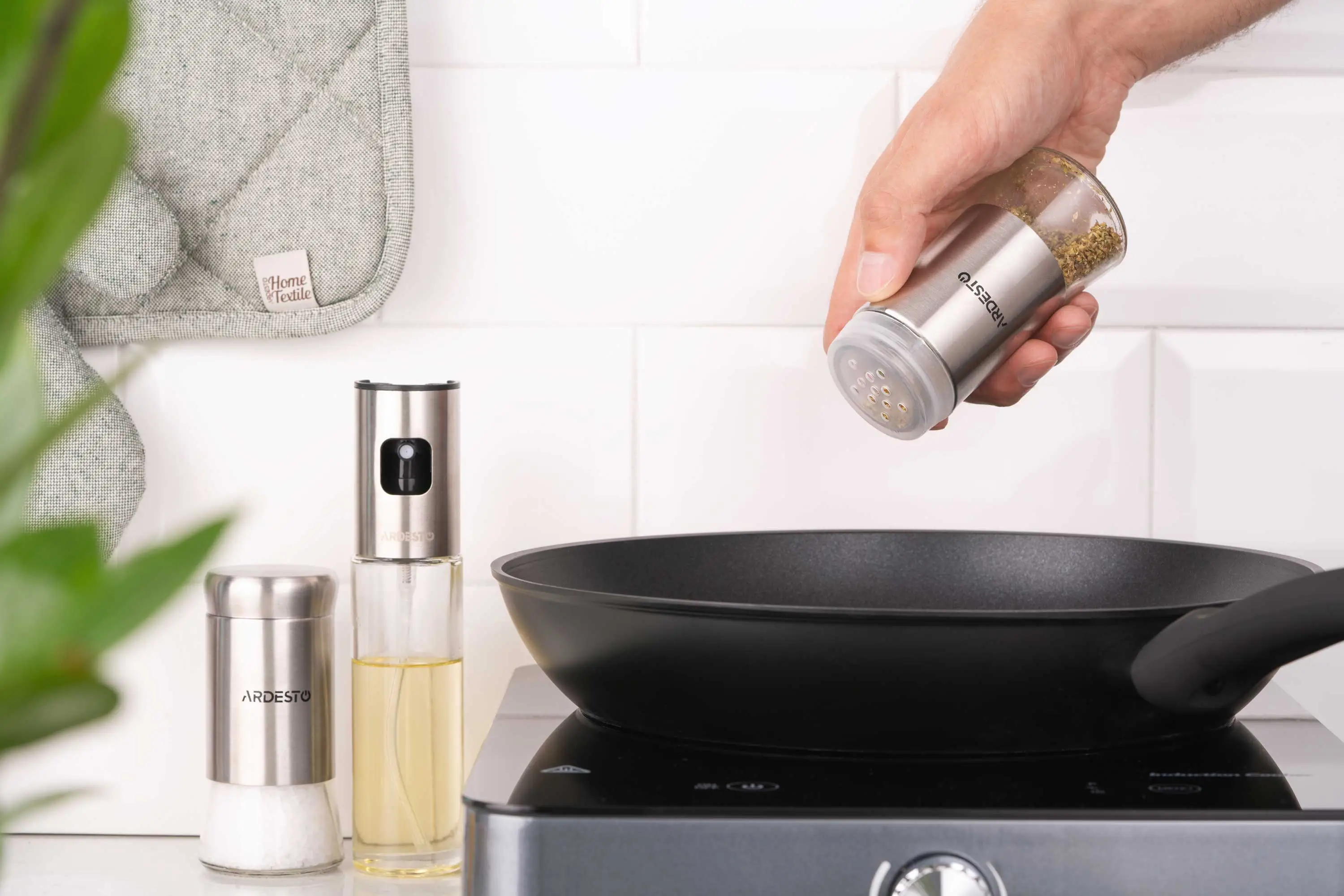 У наборі ARDESTO Gemini дві ємності для зберігання спецій об’ємом 150 мл. Виготовлено з безпечної нержавіючої сталі та скла. Матеріали не вбирають запахів, міцні та довговічні. Практичні в догляді, рекомендовано ручне миття.