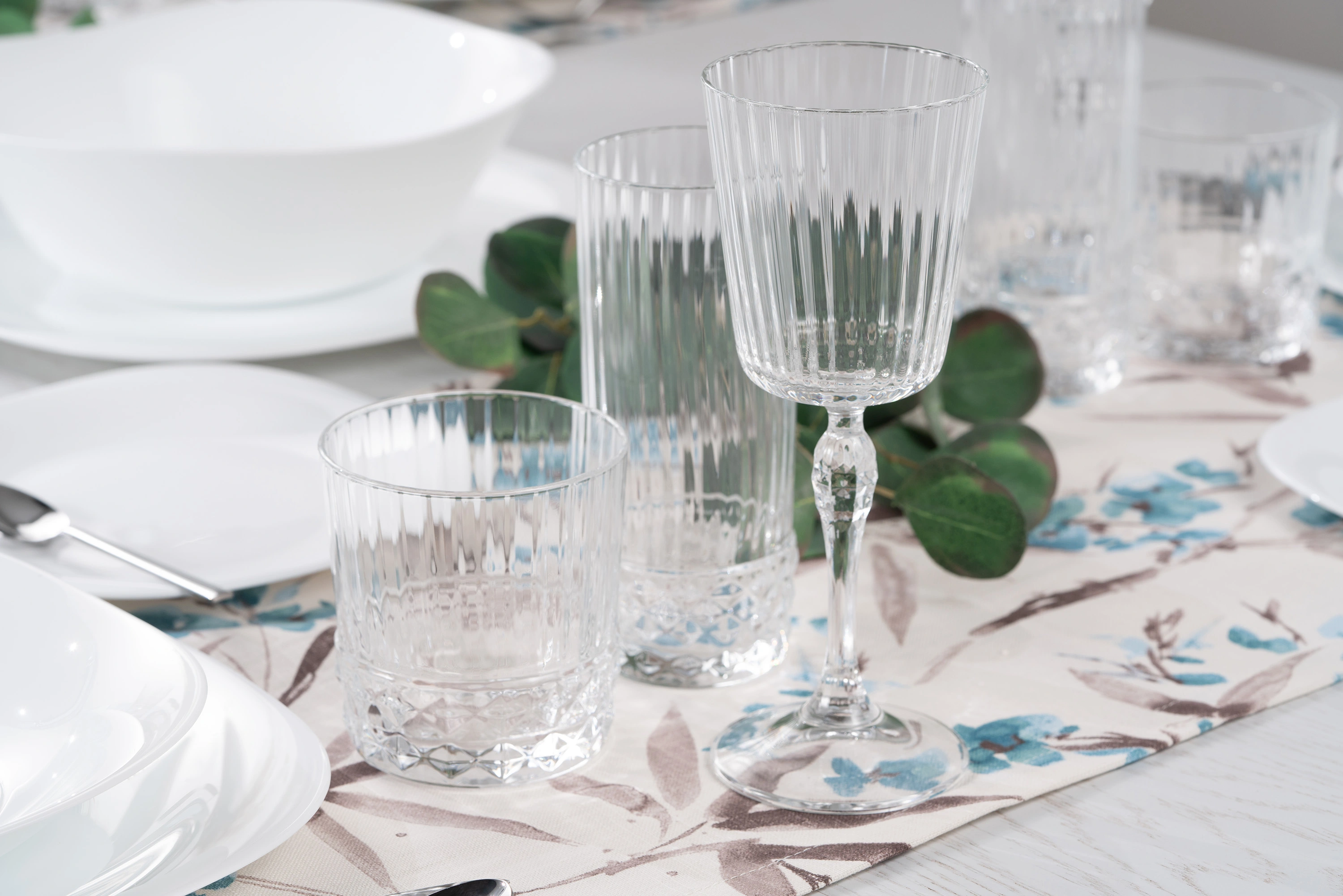 Цей келих є частиною елегантної колекції, натхненної 1920-ми роками, яка переносить гламур модних американських джаз-барів до наших днів: де йшлося про мистецтво, а атмосфера була безпрецедентною новизною та ентузіазмом. Ця модель об'ємом 250 мл має вінтажний дизайн, такий цінний і оригінальний, що він надає стиль навіть найменшим умовам. Келих прикрашений краплеподібним елементом, а кубок з прямокутними лініями перетнуто товстими канавками, що створюють інтригуючі світлові ефекти.