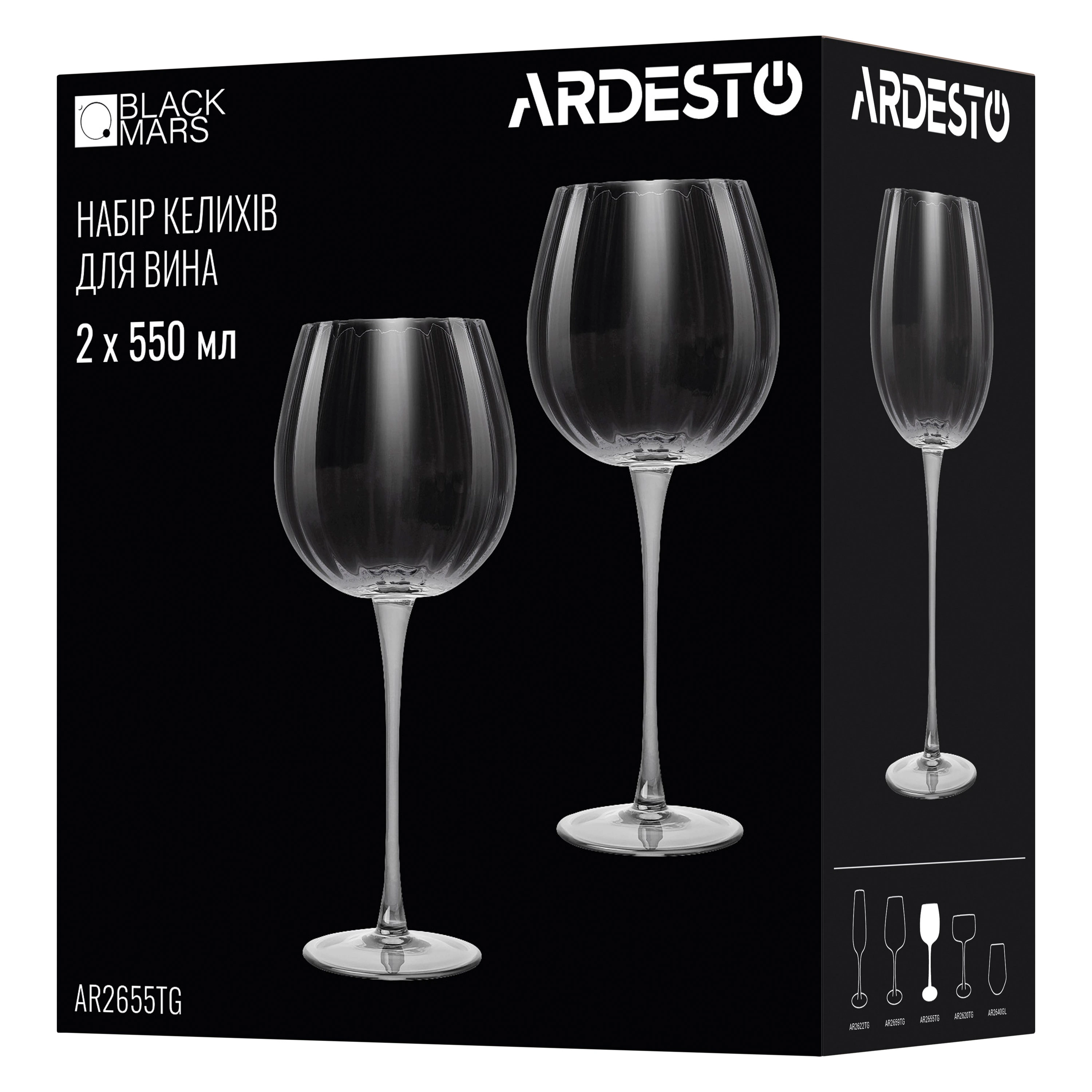 Набір келихів для вина Ardesto Black Mars Orion 550мл, 2шт, скло, прозоро-сірий