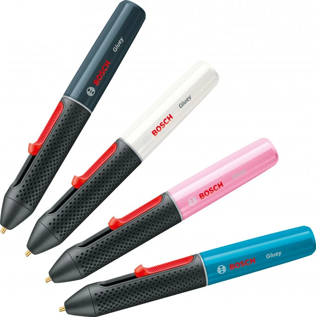 Набір Bosch Master Pack Colour Mix з 4 клейових ручок (Gluey Smokey Grey, Gluey Marshmallow, Gluey Cupcake Pink і Gluey Lagoon Blue) вагою по 12 грамів кожна. Ручки працюють від акумуляторів 1,2 В HR6 (AA) У, ємністю 2,1 А*год. Даний універсальний інструмент з продуктивністю склеювання 2 г/хв підходить для щоденного використання і дозволить реалізовувати найкреативніші проекти, пов'язані зі створенням творів мистецтва, різних кустарних виробів, саморобок, тощо.