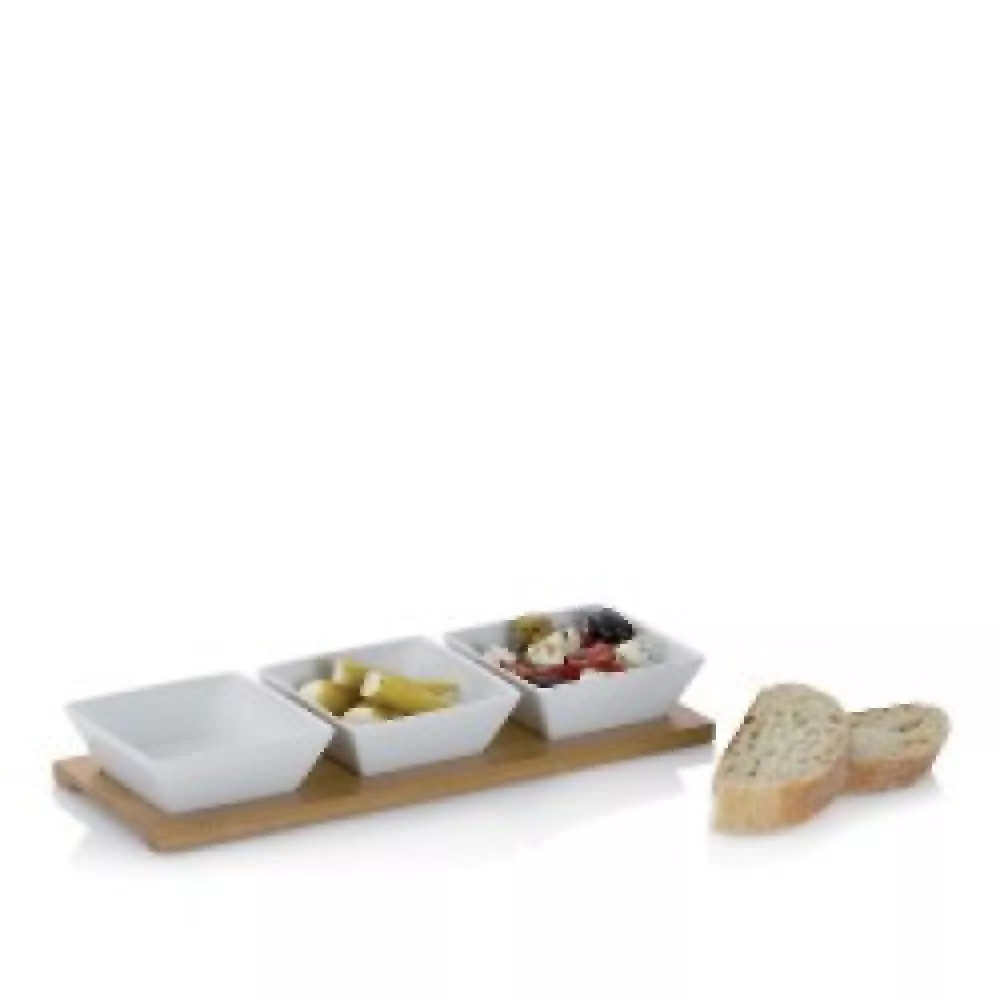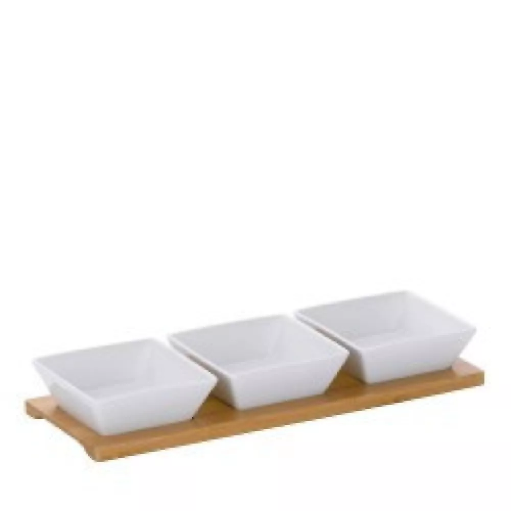 Набір KELA Philipa складається з трьох менажниць і бамбукової дошки-підставки, яка використовується для подачі та стилізації за правилами японської кухні. Все менажниці виготовлені з твердого фарфору, вкритого білою глазур'ю. Набір менажниць на підставці KELA Philipa можна використовувати для подачі до столу соєвого соусу, васабі, маринованого імбиру, водоростей та інших доповнень до основних страв японської кухні.