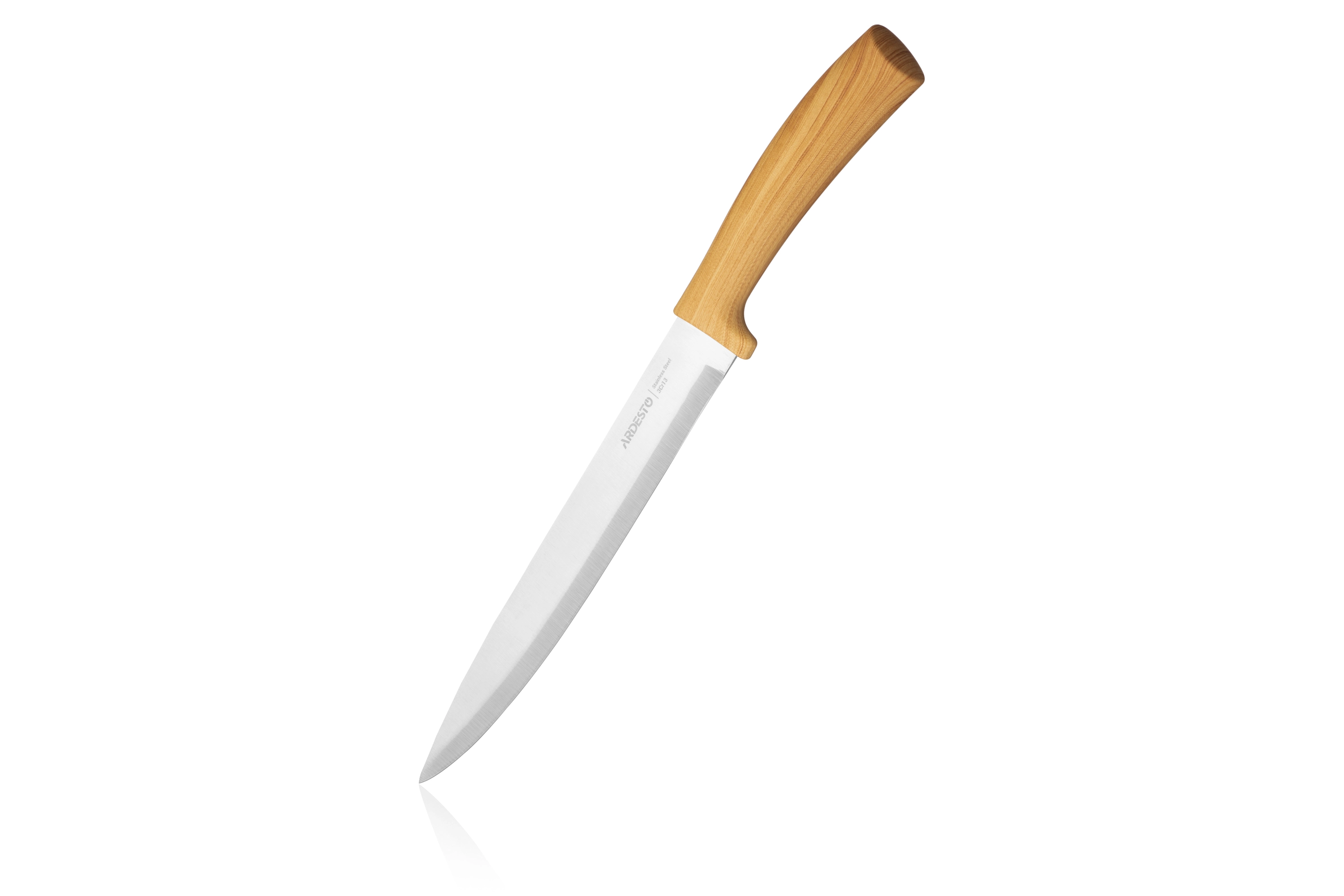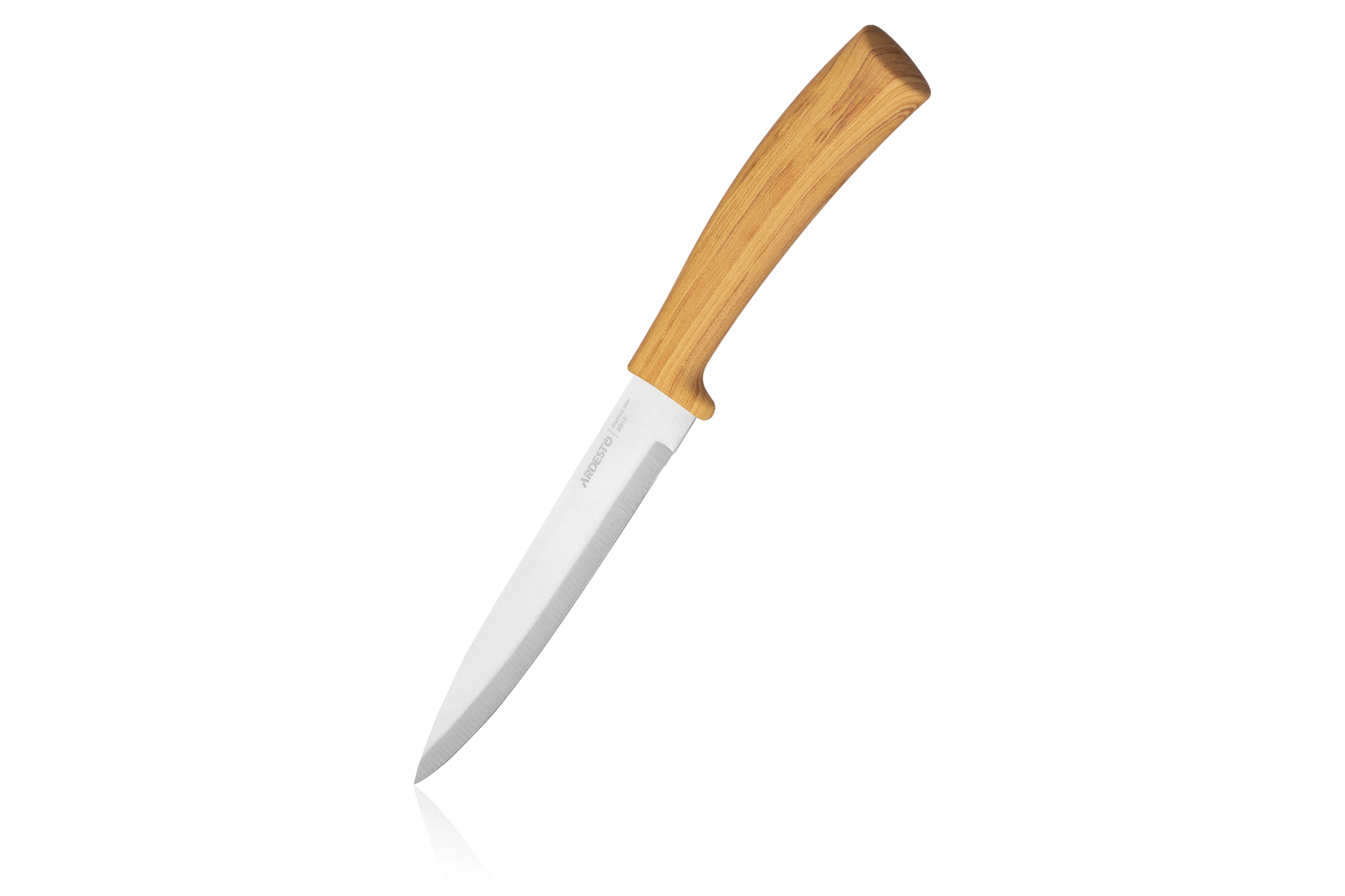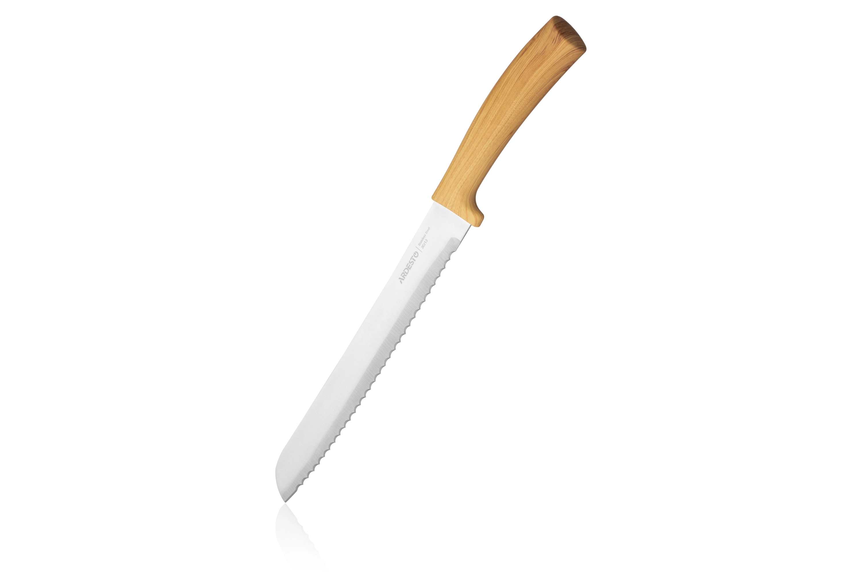 Ножі з набору ARDESTO Midori виготовлено з нержавіючої сталі 3cr13 і є міцними, мають гарний вигляд і тривалий термін експлуатації, не потребують частого заточування. Конструкцією ножів передбачено зручне пластикове руків’я, стилізоване під дерево, що не вислизає та є безпечним. У наборі 5 інструментів, що допоможуть створювати кулінарні шедеври щодня: кухарський ніж (20,3 см), ніж для хліба (20,3 см), слайсерний ніж (20,3 см), універсальний ніж (12,7 см) і ніж для чищення овочів (8,9 см). Виробник не рекомендує мити ножі в посудомийній машині.
