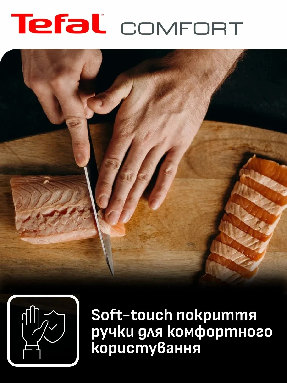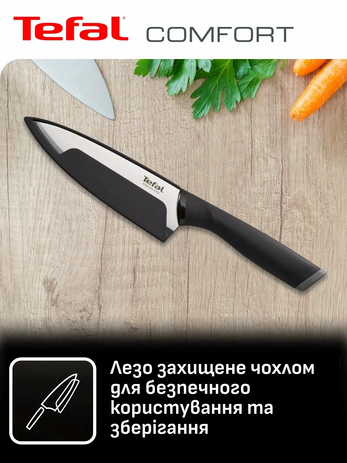 Набір ножів Tefal Comfort – зручне рішення для щоденного кухонного використання. Включає ножі з високоякісної нержавіючої сталі, ергономічними руків’ями та індивідуальними захисними чохлами для безпечного зберігання. Підійде для будь-яких кулінарних завдань – від нарізання овочів до оброблення м’яса.