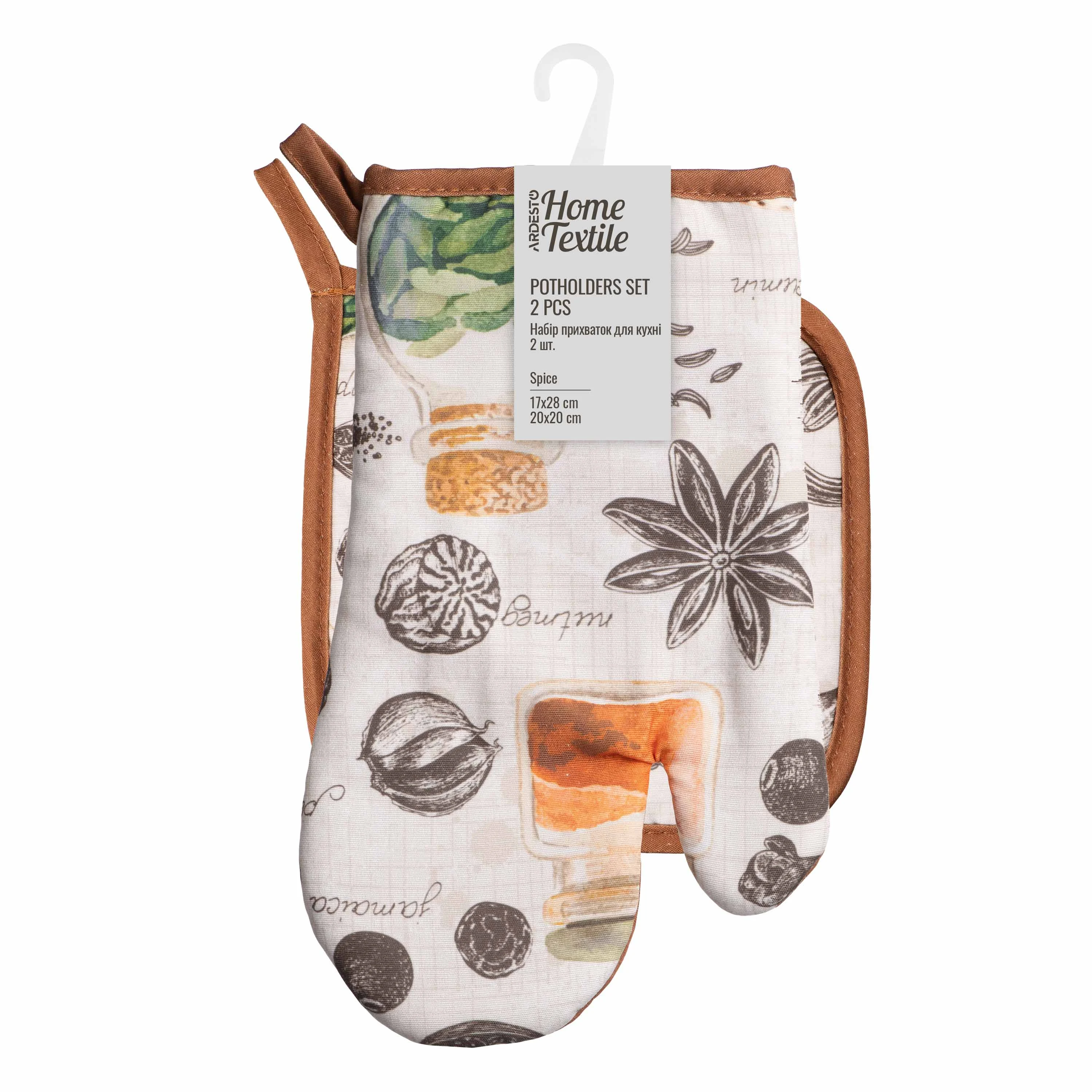 Набір прихваток для кухні Ardesto Spice 17х28см, 20х20см, 90% поліестер, 10% бавовна