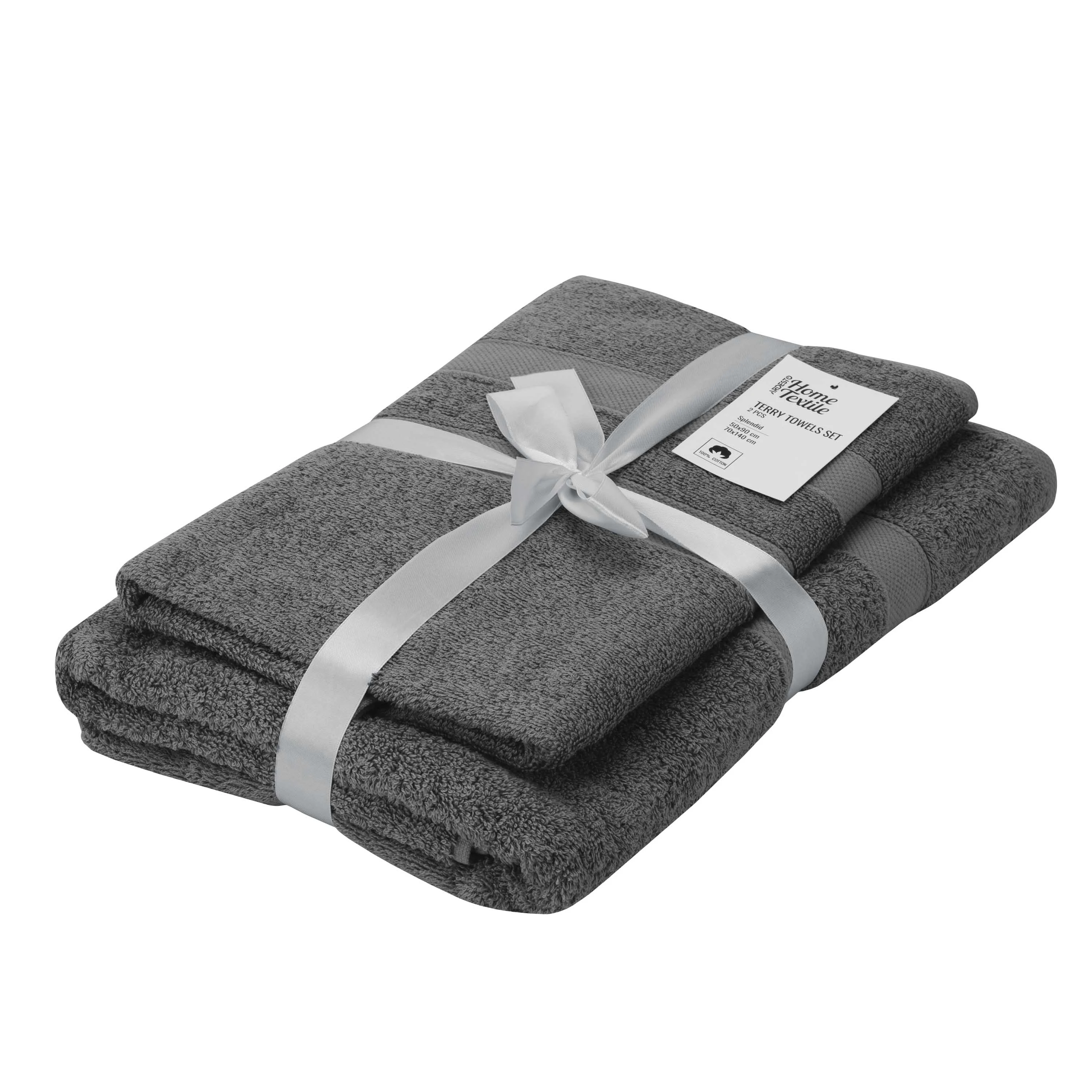 Набір рушників махрових Ardesto Splendid 50х90см, 70х140см, 2шт, 100% бавовна, сірий темний