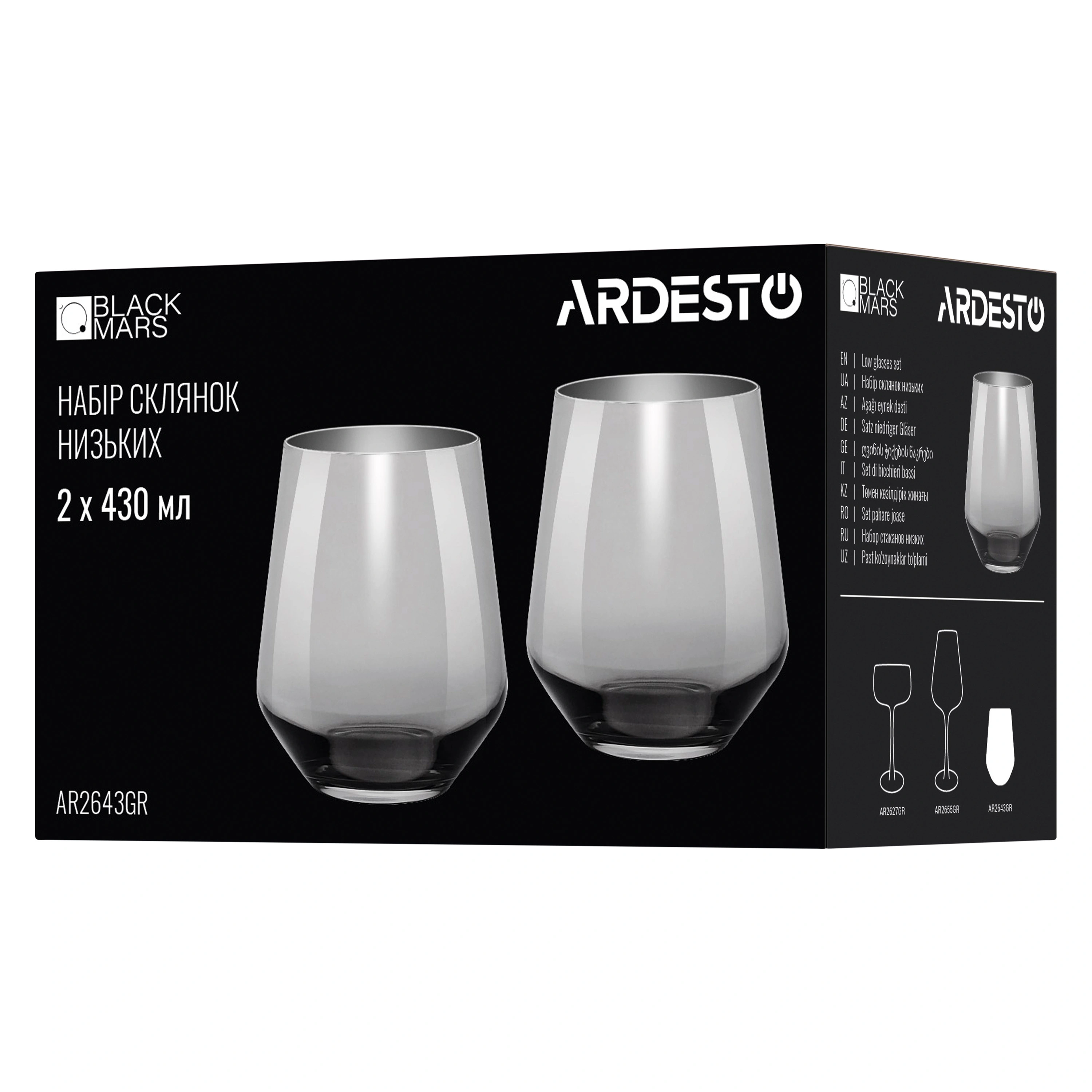 Набір склянок низьких Ardesto Black Mars Avior 430мл, 2шт, скло, сірий