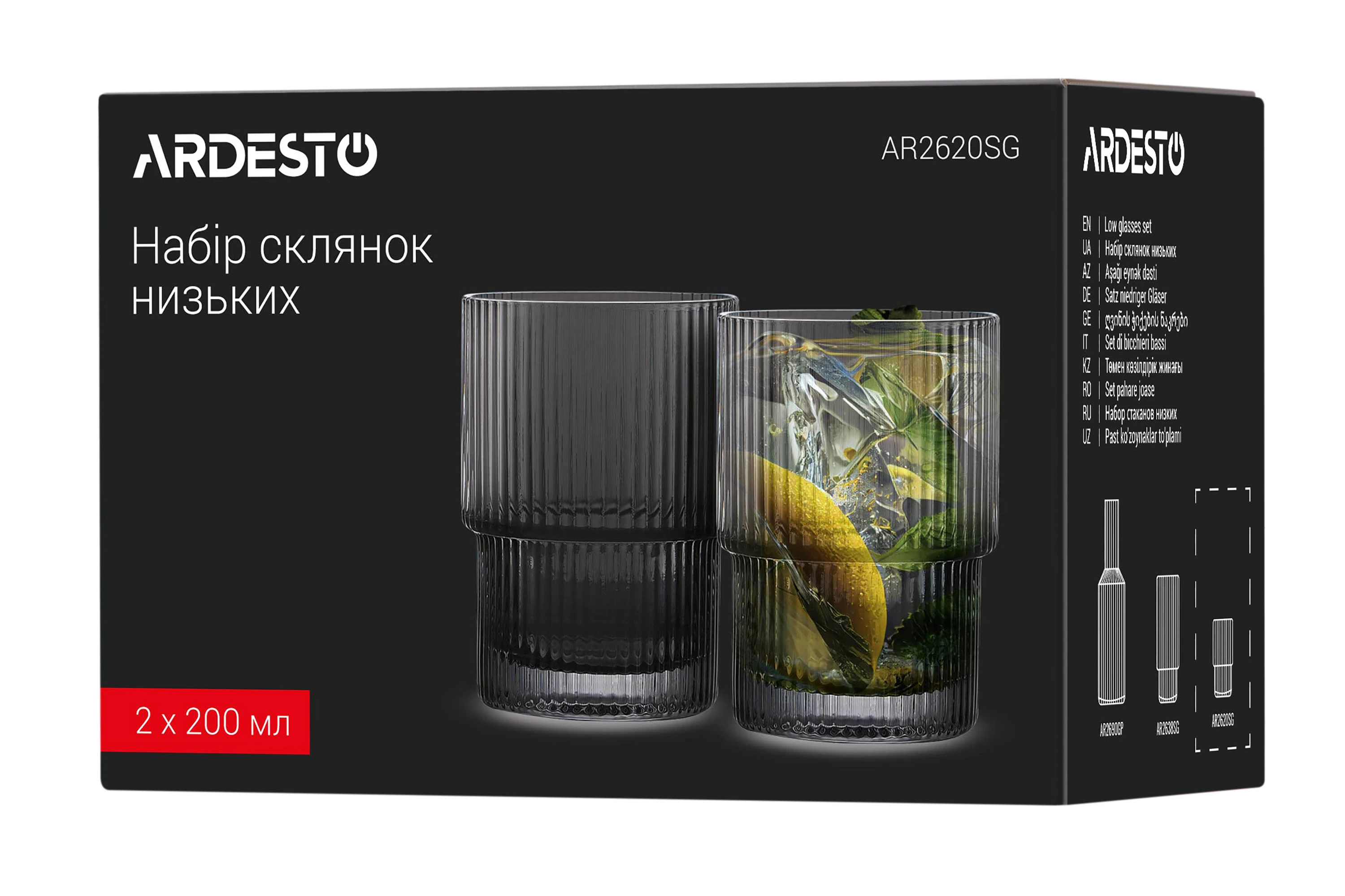 Набір склянок низьких Ardesto Graphite, 200мл, 2шт, скло, сірий