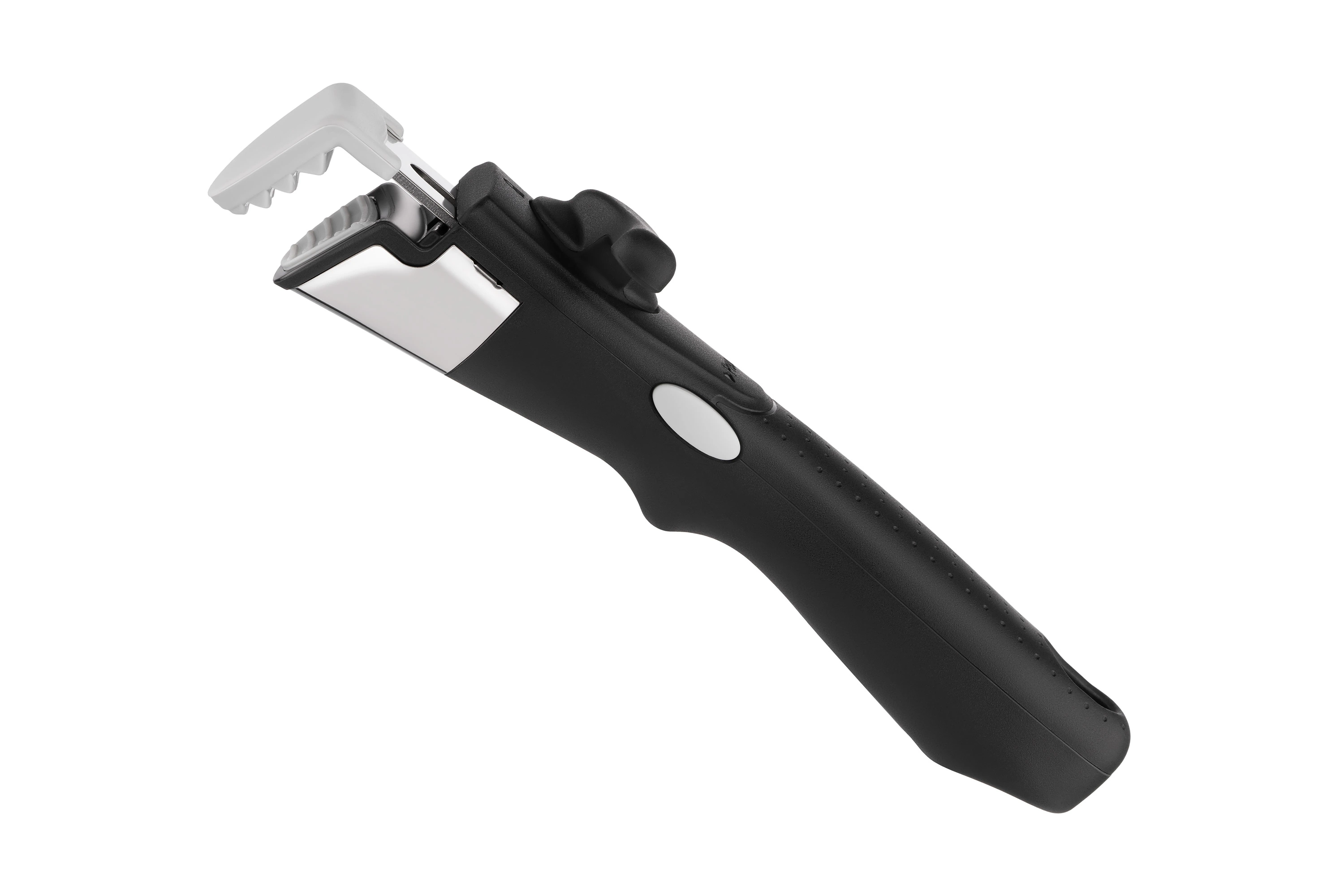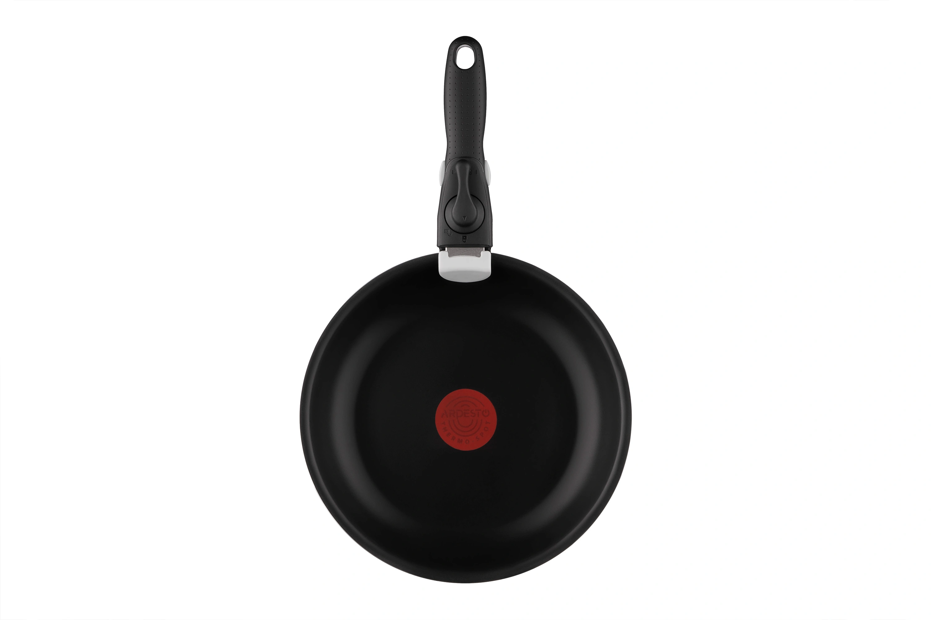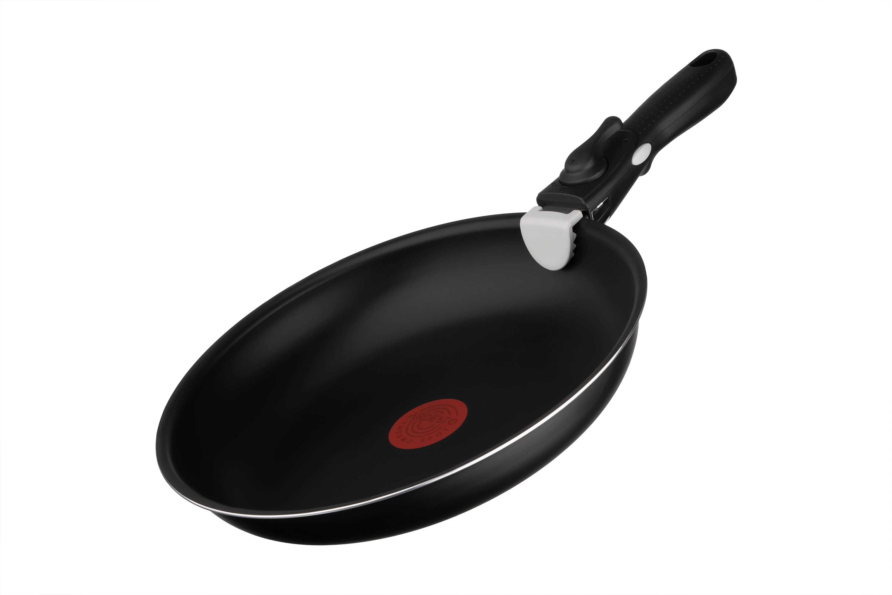 Набір складається із трьох предметів: двох пателень і знімного бакелітового руків’я із soft-touch-покриттям. Є надзвичайно вдалим рішенням для любителів розумно використовувати вільний простір. Сковороди виготовлено з алюмінію, зсередини вкрито протипригарним покриттям. На дні завтовшки 2,5 мм передбачено датчик температури.