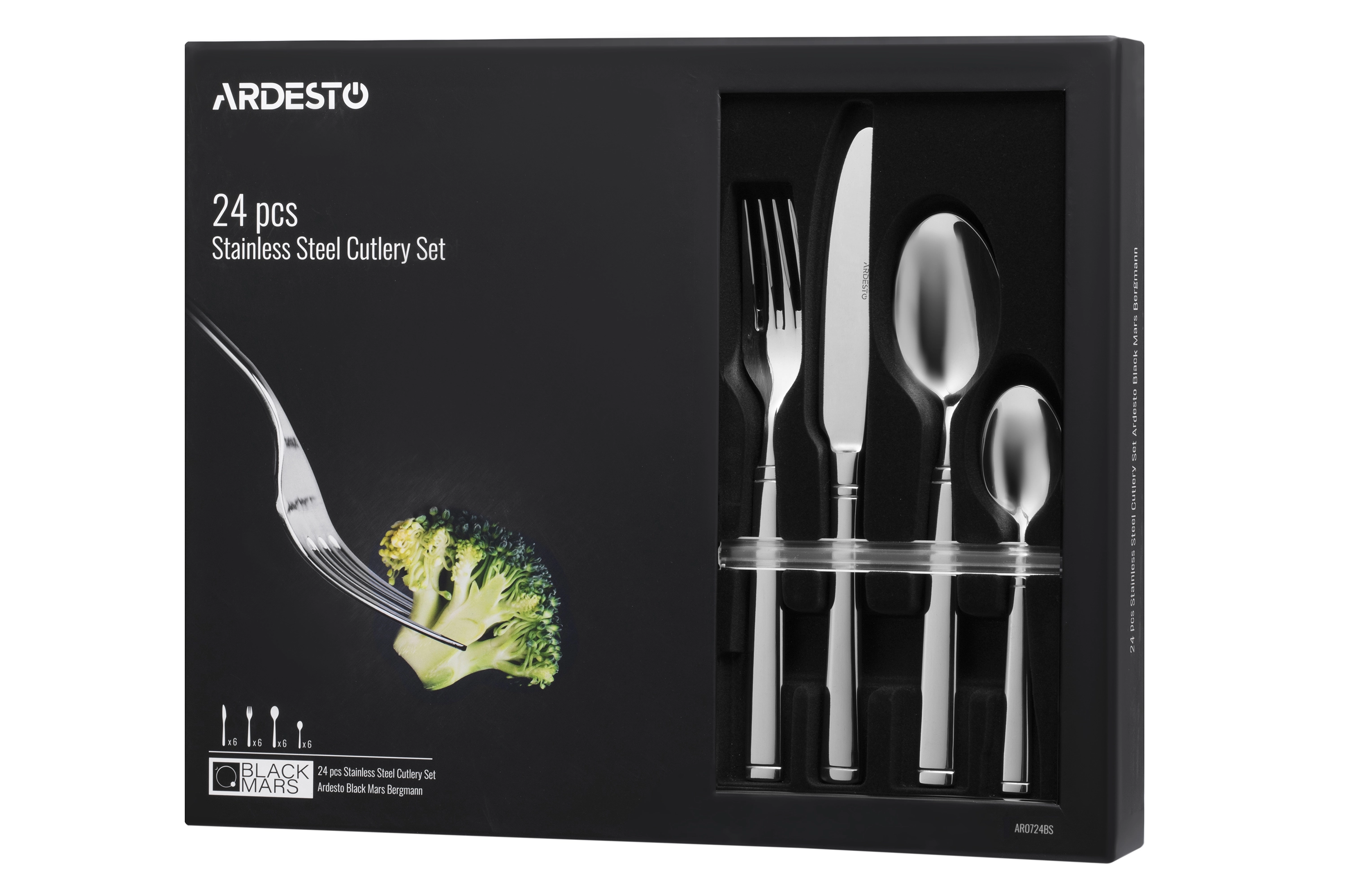 Набір столових приборів Ardesto Black Mars Bordeaux, 24 прибори, нержавіюча сталь