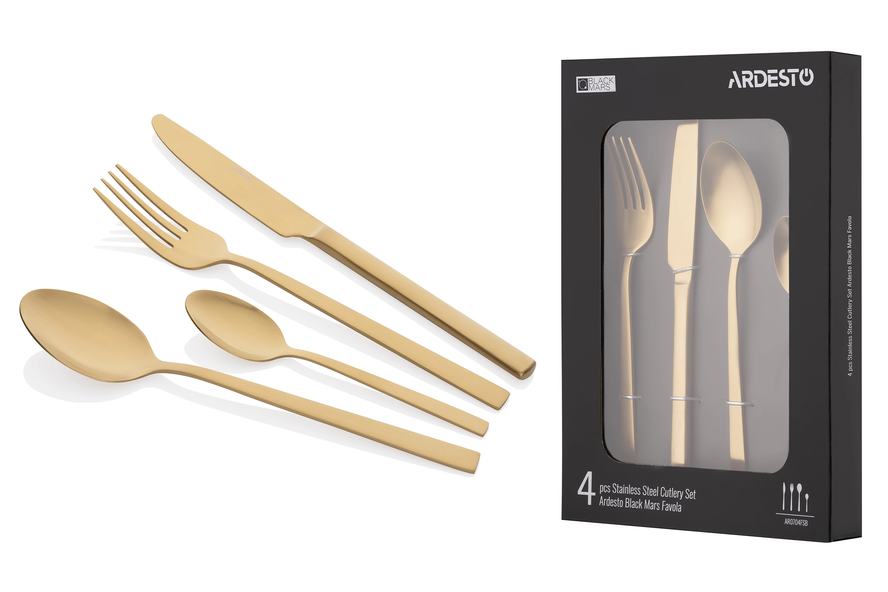 Набір столових приборів Ardesto Black Mars Favola, 4 прибори, нержавіюча сталь, золотий