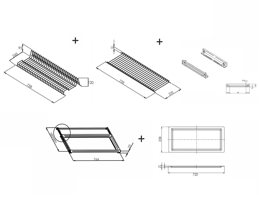 Набор сушек Vibo ESV80VARRCP с регулируемой рамкой и металлическим поддоном 800 мм.