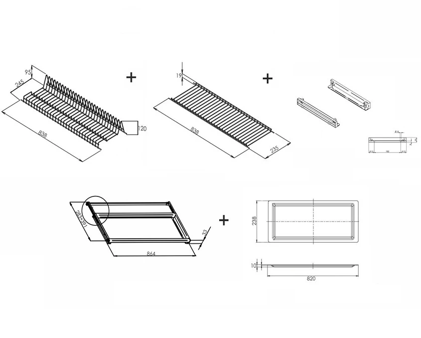 Набор сушек Vibo ESV90VPRRCP с регулируемой рамкой и пластиковым поддоном 900 мм.