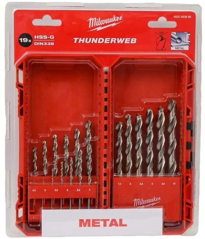 Набір свердел по металу Milwaukee HSS-G THUNDERWEB, 19 шт, 1-10мм, кейс