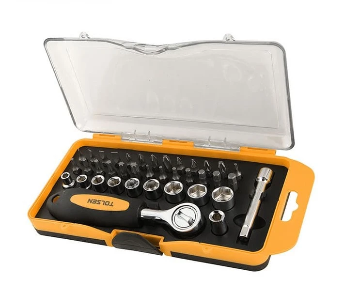 Набір торцевих головок та біт Tolsen, 1/4", з тріскачкою, 38шт