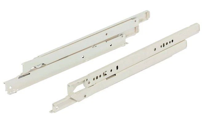 Роликовые направляющие Hafele 423.46.736 длиной 350 мм — это усиленный вариант для выдвижных ящиков с большой нагрузкой. Благодаря прочной стальной конструкции, направляющие выдерживают до 50 кг и обеспечивают стабильную и плавную работу. Белое покрытие гармонично сочетается с мебелью светлых оттенков.