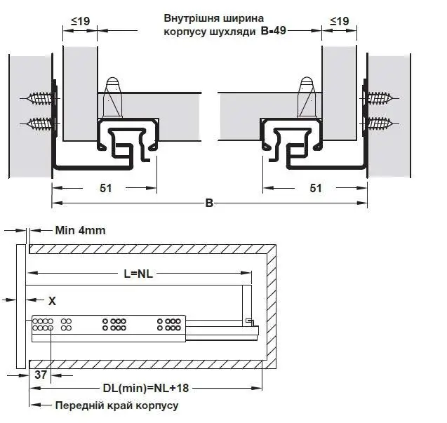 - Тип установки: скрытый (под дно ящика)