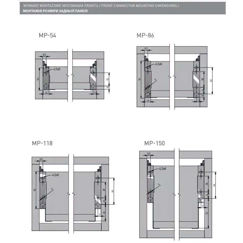 Направляющие GTV MP-150300-10 длиной 300 мм и высотой борта 150 мм — это компактное, но вместительное решение для ящиков с высоким фасадом. Отлично подходят для мебели, где важна вертикальная загрузка при ограниченной глубине корпуса.