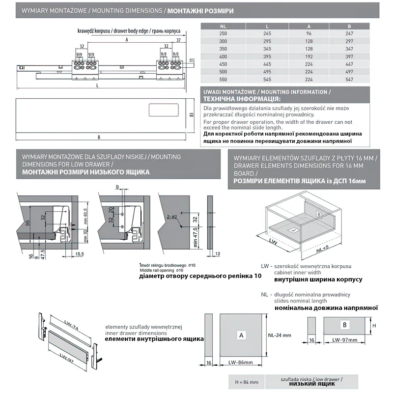 Направляющие GTV MODERN BOX PB-D-KPL350A — это удобное и прочное решение для создания выдвижных ящиков с низкими боковинами. Высота 84 мм делает систему идеальной для установки во внутренние или нижние ящики. Направляющие обеспечивают полное выдвижение, плавное закрытие и выдерживают до 40 кг нагрузки.