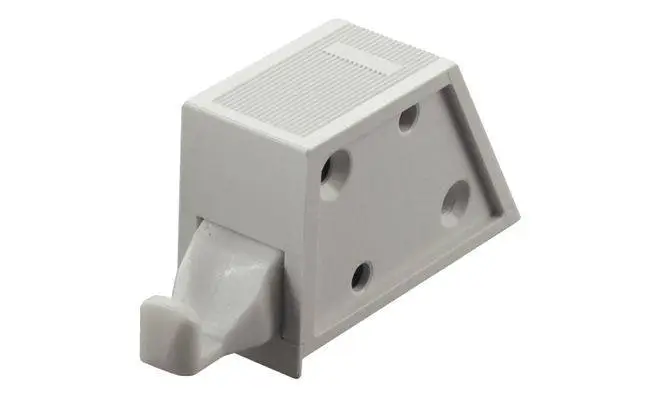 Нажимная защёлка Hafele PUSH 329.44.500 — удобный механизм для открывания мебельных дверей без ручек. Модель белого цвета крепится к корпусу мебели с помощью винтов, что упрощает установку. Открывание происходит лёгким нажатием на фасад — без видимых элементов и фурнитуры.