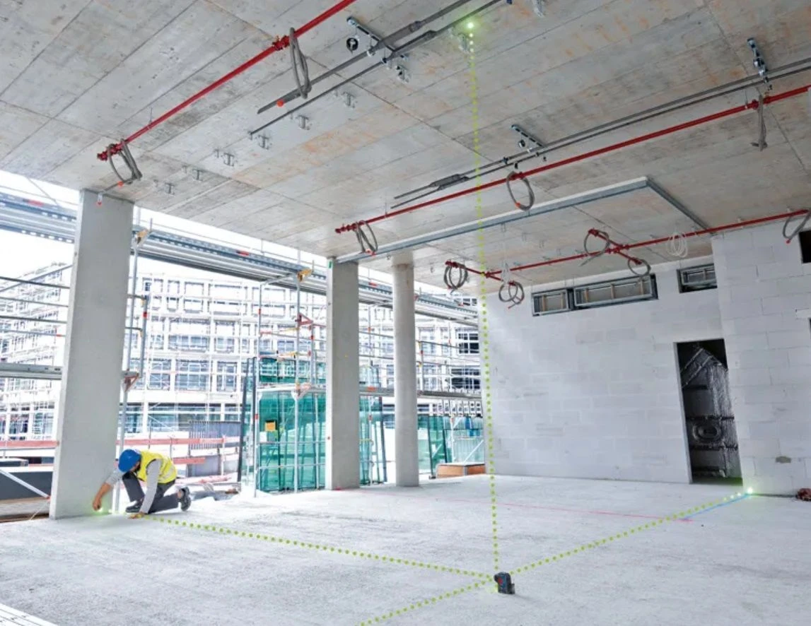 Лазерний нівелір Bosch Professional GPL 5G проєктує 5 зелених точок для точного перенесення та вирівнювання на відстані до 30 м. Компактний корпус вагою 0.35 кг, похибка лише ±0.35 мм/м та захист у чохлі роблять його надійним інструментом для монтажних і будівельних робіт.